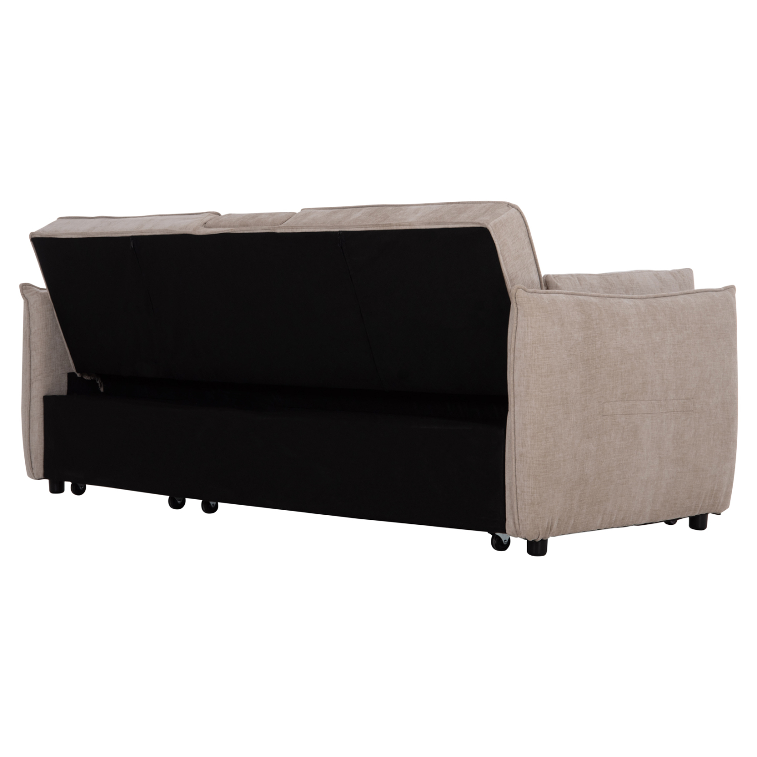 • Η πλάτη «πέφτει» με την ανάπτυξη του συρόμενου, σχηματίζοντας άνετο και μεγάλο κρεβάτι.