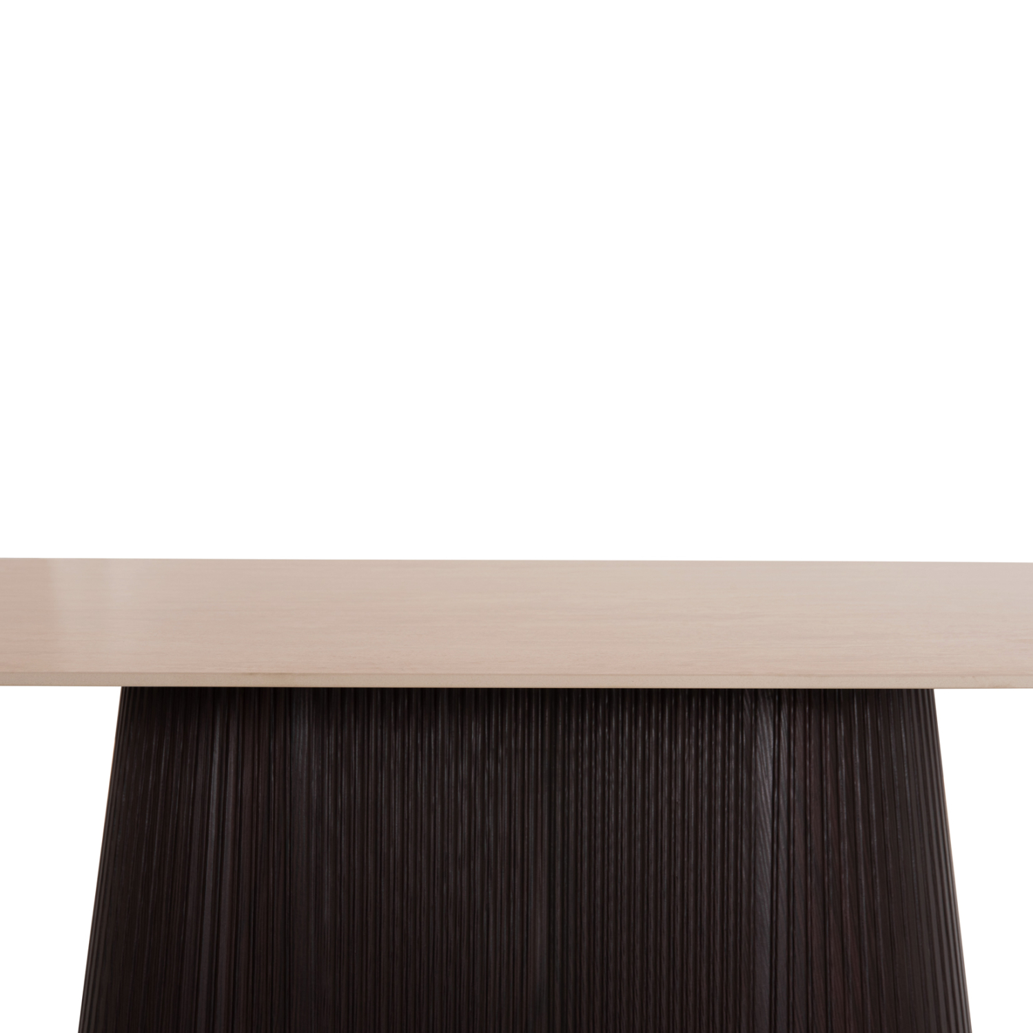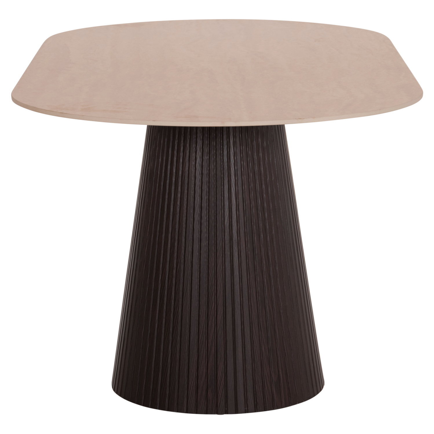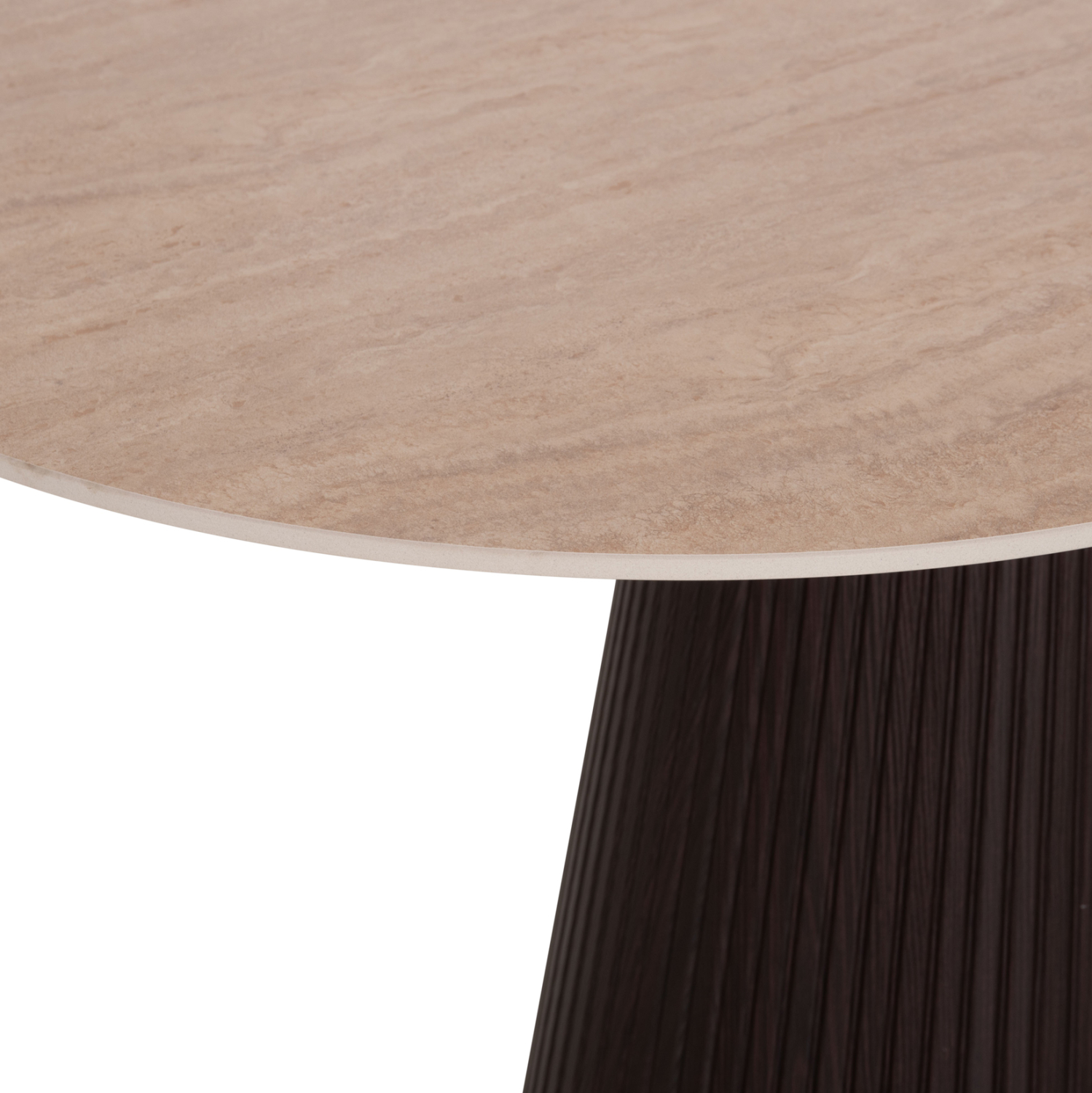 Το τραπέζι τραπεζαρίας FB918320 είναι οβάλ και αποτελεί νέα προσθήκη στην γκάμα μας. Η επίπεδη επιφάνειά του είναι κεραμική σε χρωματισμό TRAVERTINE STONE, ενώ η βάση του είναι κατασκευασμένη εξολοκλήρου από MDF σε χρώμα ΣΚΟΥΡΟ ΚΑΦΕ, με όμορφες πτυχώσεις.