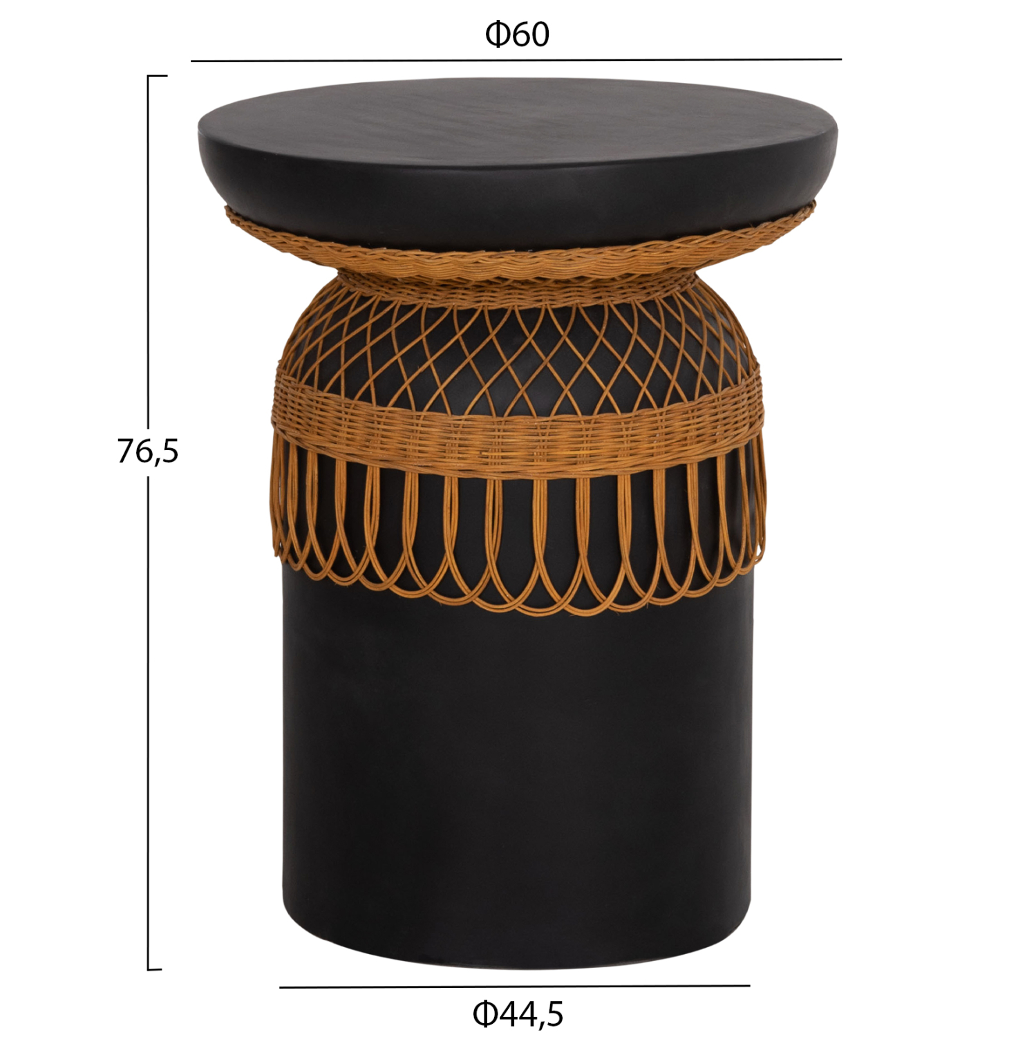 ΒΟΗΘΗΤΙΚΟ ΤΡΑΠΕΖΙ FB918159.01 FIBER CEMENT ΜΑΥΡΟ & RATTAN–Φ60×76,5Υεκ
