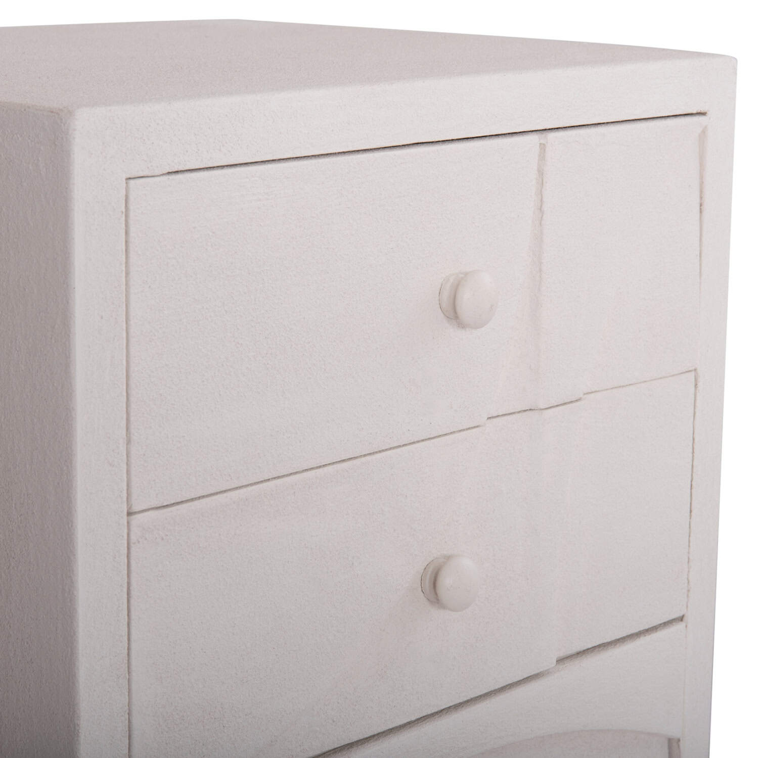 Το χειροποίητο κομοδίνο FB918047 είναι εξολοκλήρου κατασκευασμένο από MDF σε ΥΠΟΛΕΥΚΟ χρώμα με υφή σαγρέ τσιμέντου , που αποτελεί την πιο σύγχρονη τάση στον τομέα του interior design. Διαθέτει 3 συρτάρια με ανάγλυφα σχέδια, που προσφέρουν αρκετό χώρο για τοποθέτηση όλων όσων θέλετε σε ένα κομοδίνο. Ενδεικνυται για μια “νησιωτικού” στυλ διακόσμηση!