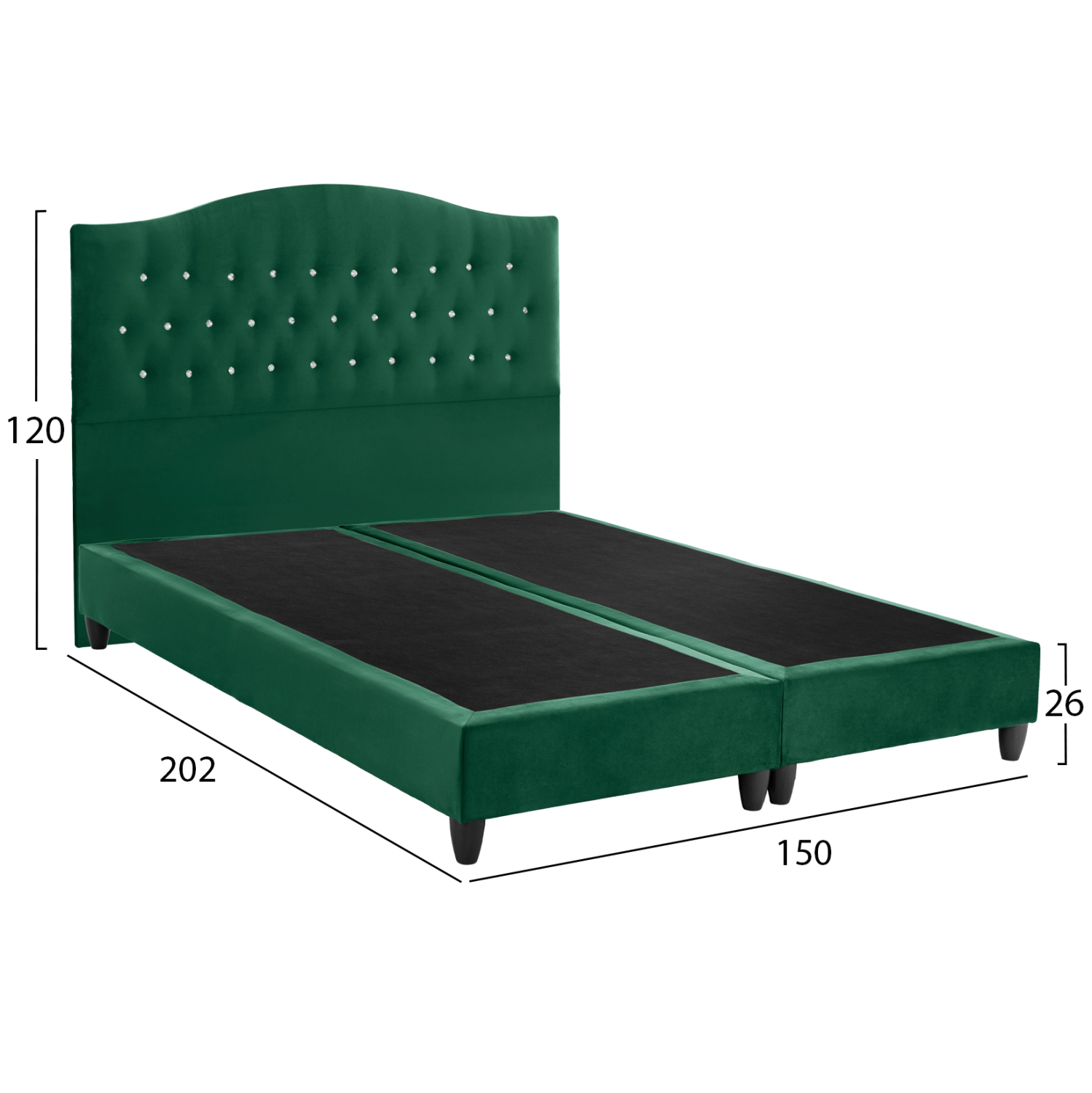 Το κρεβάτι αυτό έχει ψηλό κεφαλάρι, επενδυμένο με καπιτονέ τεχνοτροπία με τρούκς, ενώ και όλη η επένδυση του κρεβατιού είναι από βελούδινο ύφασμα. Το ΚΥΠΑΡΙΣΣΙ χρώμα σε όλο το κρεβάτι είναι εντυπωσιακό και μπορεί να συνδυαστεί με πληθώρα διακοσμητικών μοτίβων.
