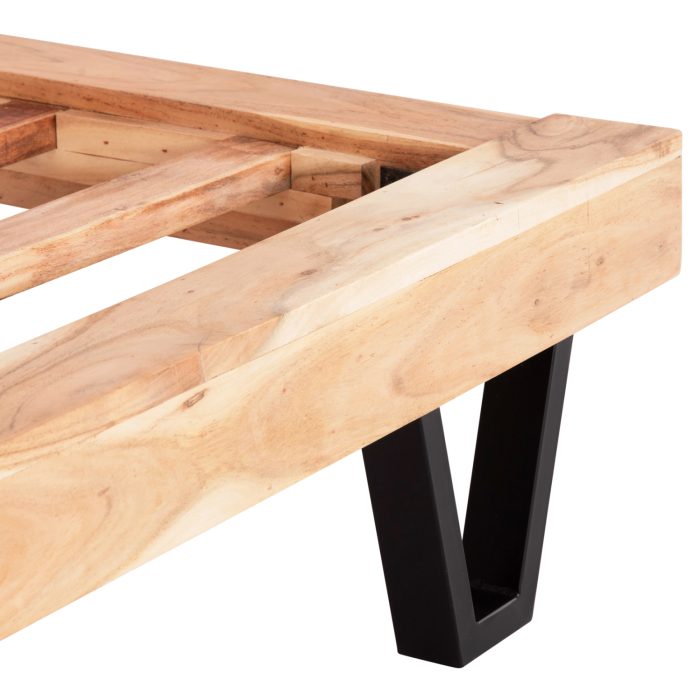 Όλο το υπόλοιπο κρεβάτι είναι κατασκευασμένο από μασίφ ξύλο ακακίας. Όταν αναφερόμαστε σε μασίφ, εννοούμε τα ξύλα που κατασκευάζονται ολοκληρωτικά από τον κορμό δέντρου. Το μασίφ είναι η πιο ακριβή επιλογή σε είδος ξύλου αλλά ξεχωρίζει για την διαχρονική αισθητική του.