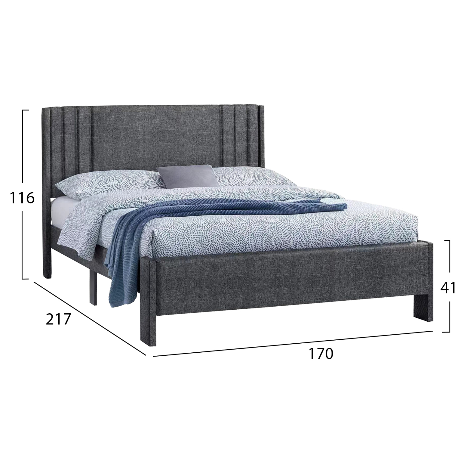 ΚΡΕΒΑΤΙ ΔΙΠΛΟ FB9685.01 ΓΚΡΙ ΥΦΑΣΜΑ ΓΙΑ ΣΤΡΩΜΑ 160Χ200εκ.