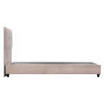 Το κρεβάτι αυτό έχει ψηλό κεφαλάρι, και έχει διακόσμηση με 2 μόνο τρουκς (κουμπάκια), ενώ και όλη η επένδυση του κρεβατιού είναι από ανάγλυφο ύφασμα τύπου NUBUCK. Το ΜΠΕΖ χρώμα σε όλο το κρεβάτι είναι ουδέτερο και μπορεί να συνδυαστεί με πληθώρα διακοσμητικών μοτίβων. Όμως, το κύριο χαρακτηριστικό αυτού του κρεβατιού είναι ότι δεν ακολουθεί την κλασική κατασκευή με τις τάβλες του σομιέ για την στήριξη του στρώματος, αλλά αντίθετα αποτελείται από μια συνεχόμενη επιφάνεια πάνω στην οποία τοποθετείται το στρώμα! Σε διαστάσεις μονού στρώματος 90×200 εκ.