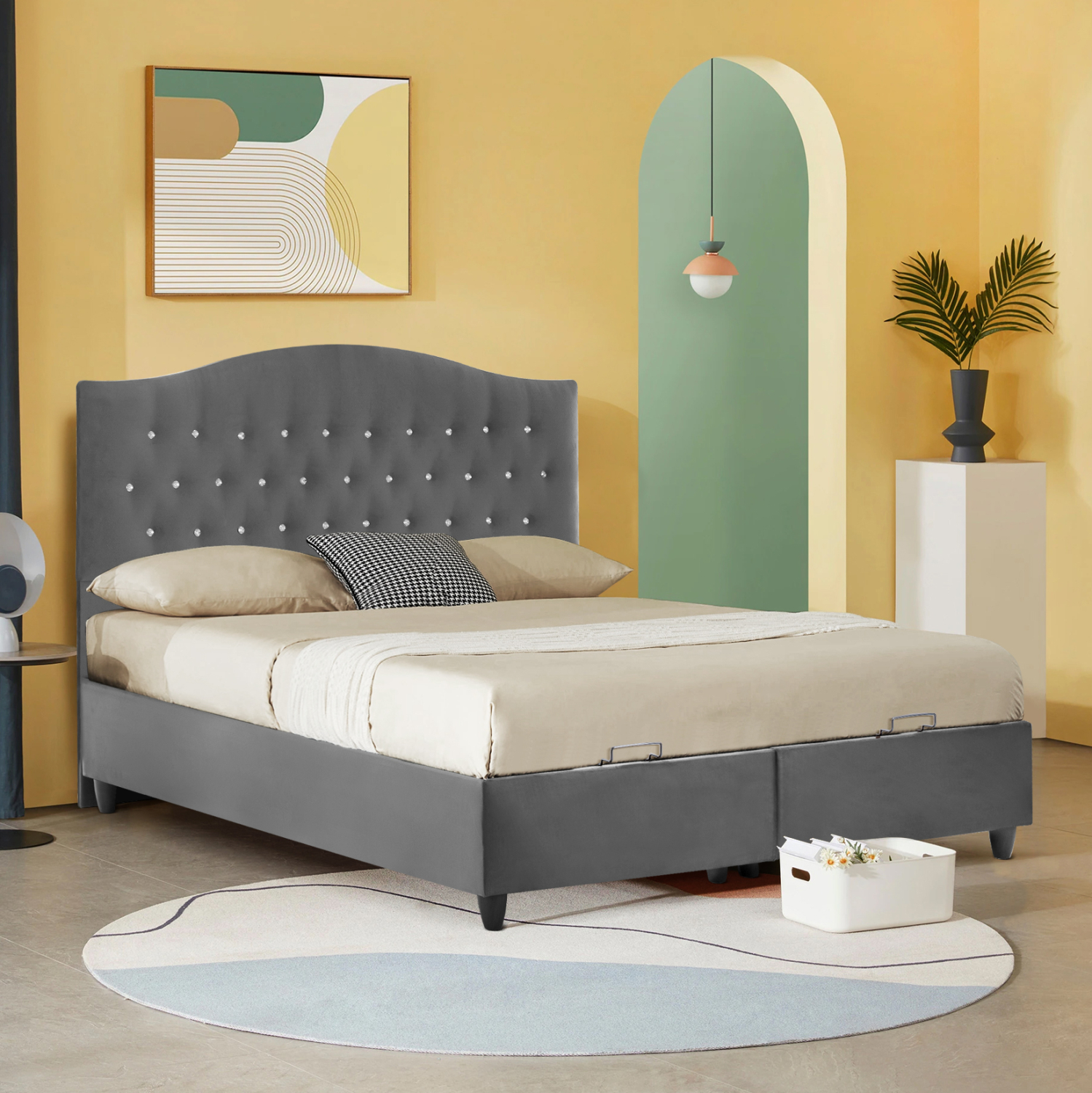 ΚΡΕΒΑΤΙ ΜΕ ΑΠΟΘΗΚΕΥΤΙΚΟ ΑΠΟ ΓΚΡΙ ΒΕΛΟΥΔΟ FB9624.10 ΓΙΑ ΣΤΡΩΜΑ 160×200 εκ.