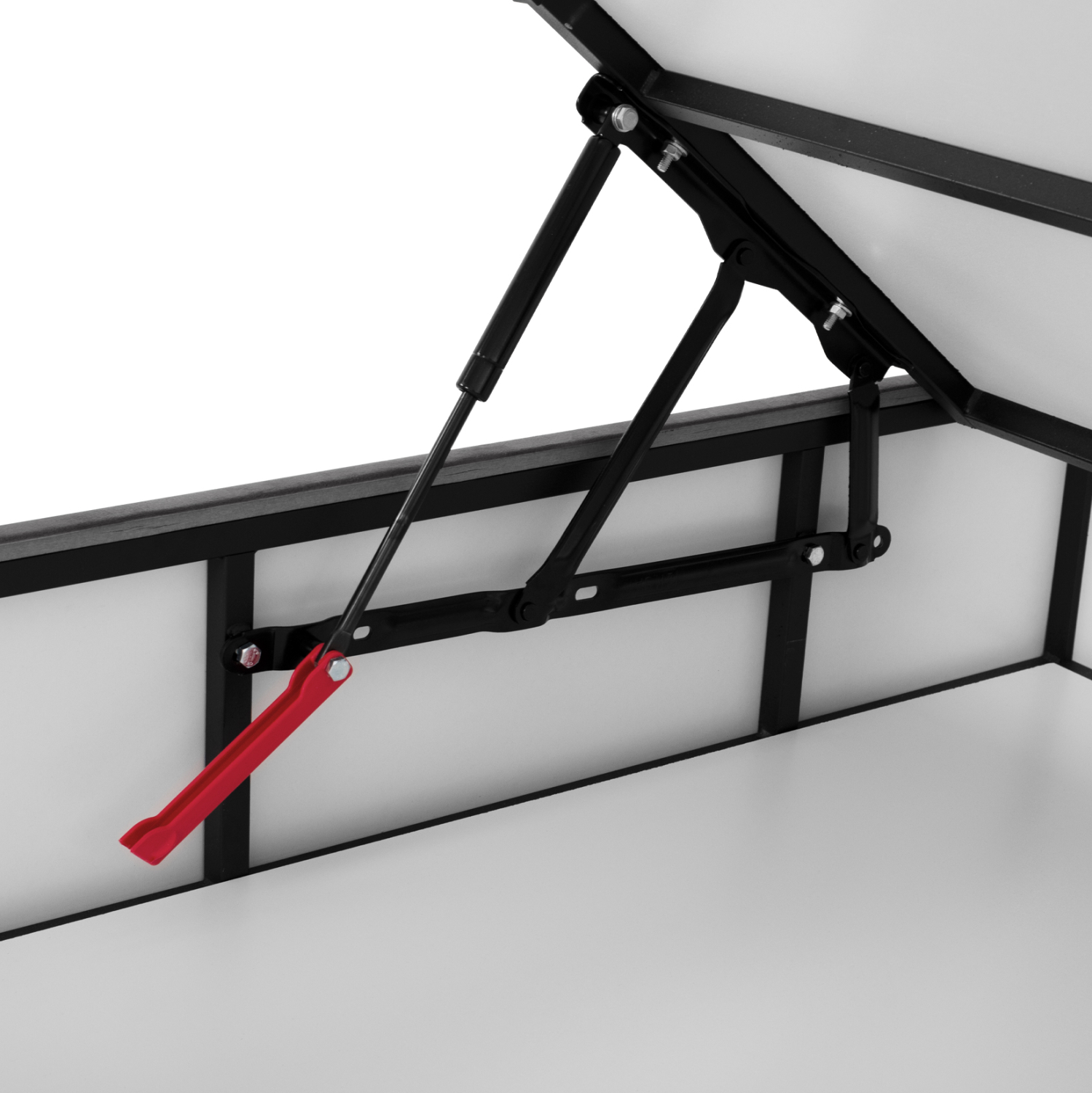 Επιπλέον, η κάθε επιφάνεια από μοριοσανίδα ανασηκώνεται με μεταλλικό μηχανισμό ασφαλείας με 4 αμορτισέρ και μεταλλικές λαβές προσφέροντας έναν μεγάλο αποθηκευτικό χώρο. Σε διαστάσεις στρώματος 160×200 εκ. θα χωρέσει κάθε σας όνειρο!