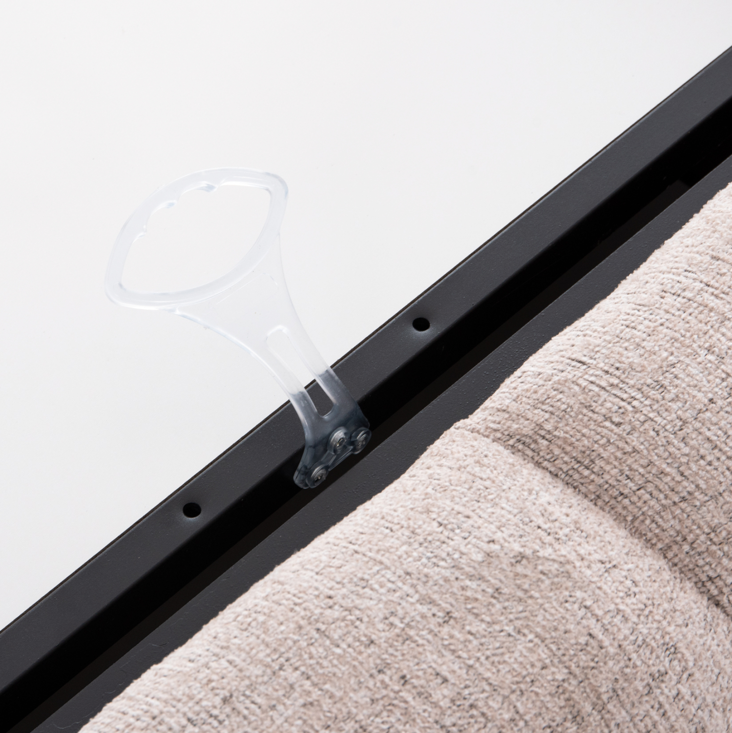 Το FB9720.10 είναι ένα κρεβάτι που θα αγαπήσετε με την πρώτη ματιά! Το κεφαλάρι είναι ψηλό με τεχνοτροπία καπιτονέ από «ζεστό» και εντυπωσιακό ύφασμα TEDDY σε ΜΠΕΖ χρώμα. Τα πλαϊνά του κρεβατιού αλλά και το ποδαρικό είναι ίδιας αισθητικής με το κεφαλάρι και «αγκαλιάζουν» το στρώμα! Όμως, το κύριο χαρακτηριστικό αυτού του κρεβατιού είναι ότι δεν ακολουθεί την κλασική κατασκευή με τις τάβλες του σομιέ για την στήριξη του στρώματος, αλλά αντίθετα αποτελείται από μια συνεχόμενη επιφάνεια (2 μοριοσανίδες), πάνω στις οποίες τοποθετείται το στρώμα! Επιπλέον, η κάθε επιφάνεια από μοριοσανίδα ανασηκώνεται με μεταλλικό μηχανισμό ασφαλείας με 4 αμορτισέρ και διαφανείς πλαστικές λαβές προσφέροντας έναν μεγάλο αποθηκευτικό χώρο. Σε διπλή διάσταση στρώματος 160×200 εκ. θα χωρέσει κάθε σας όνειρο!