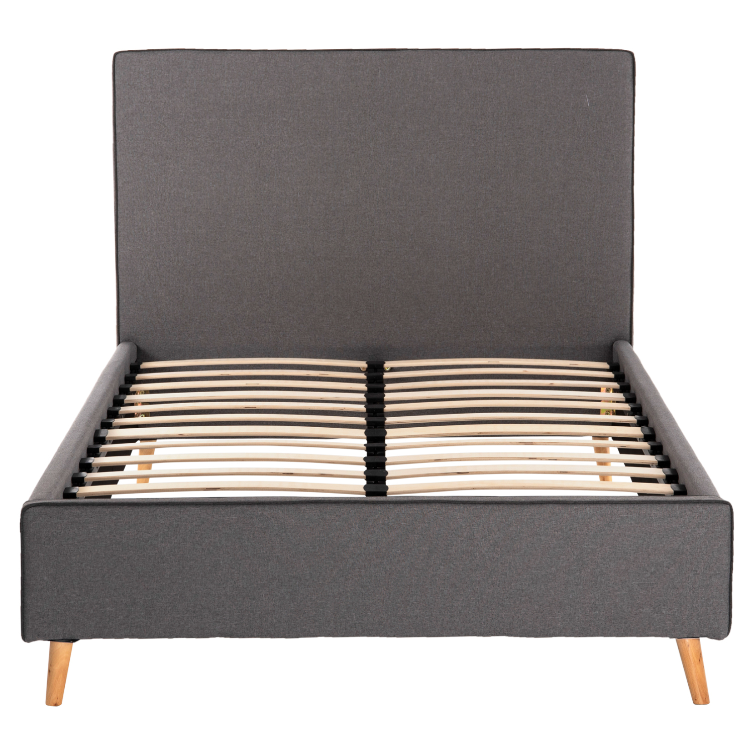 Το ημίδιπλο κρεβάτι FB921281.03 είναι επενδυμένο με ποιοτικό ύφασμα σε ΓΚΡΙ χρώμα με πιο σκούρο ρέλι στις ραφές. Το στρώμα (διατίθεται σε ROLL-PACKING*) που συνοδεύει το κρεβάτι τοποθετείται σε δύο σειρές ανατομικές τάβλες, είναι διπλής όψης και είναι ΑΦΡΟΥ χωρίς ελατήρια. Τα πόδια είναι ξύλινα σε φυσικό χρώμα.