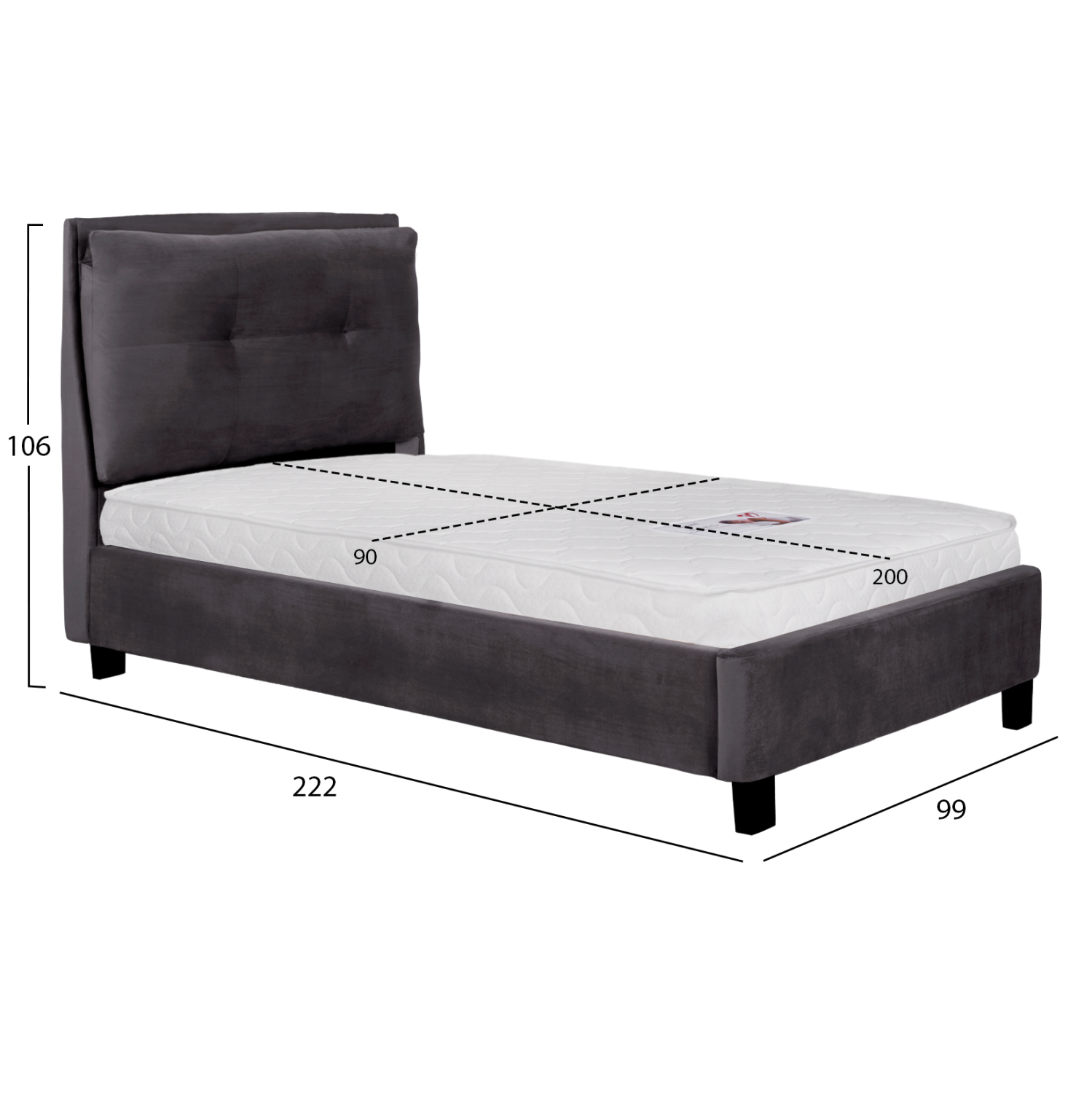ΚΡΕΒΑΤΙ ΜΕ ΣΤΡΩΜΑ FB921282.01 ΓΚΡΙ ΒΕΛΟΥΔΟ–ΓΙΑ 90×200εκ