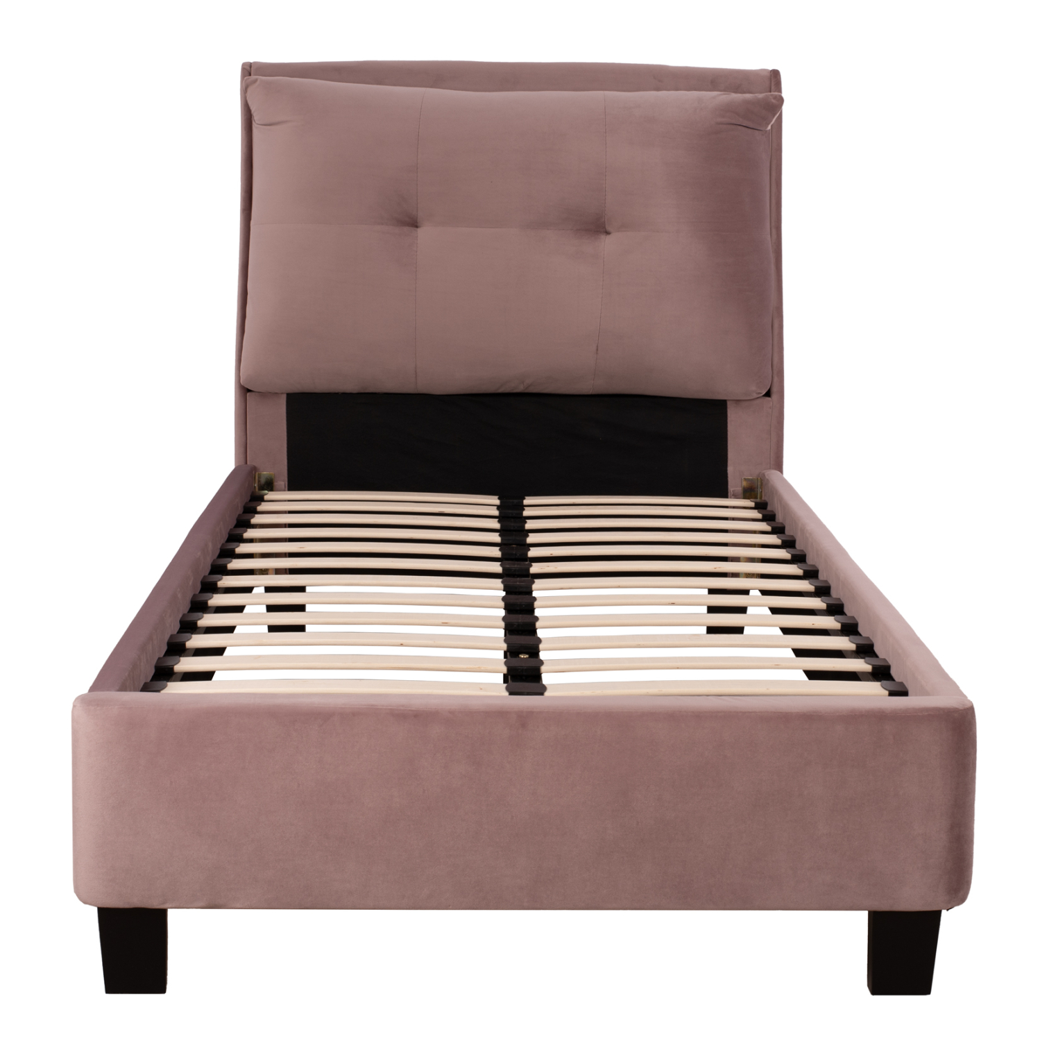 Το μονό κρεβάτι FB921282.02 είναι επενδυμένο με βελούδο σε ΣΑΠΙΟ ΜΗΛΟ χρώμα. Το στρώμα (διατίθεται σε ROLL-PACKING*) που συνοδεύει το κρεβάτι τοποθετείται σε δύο σειρές ανατομικές τάβλες, είναι διπλής όψης και είναι ΑΦΡΟΥ χωρίς ελατήρια. Τα πόδια είναι σχετικά ψηλά από πολυπροπυλένιο σε μαύρο χρώμα.
