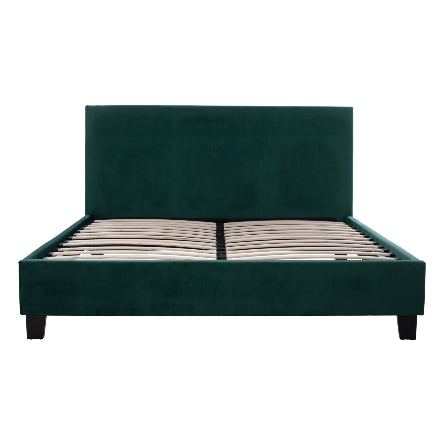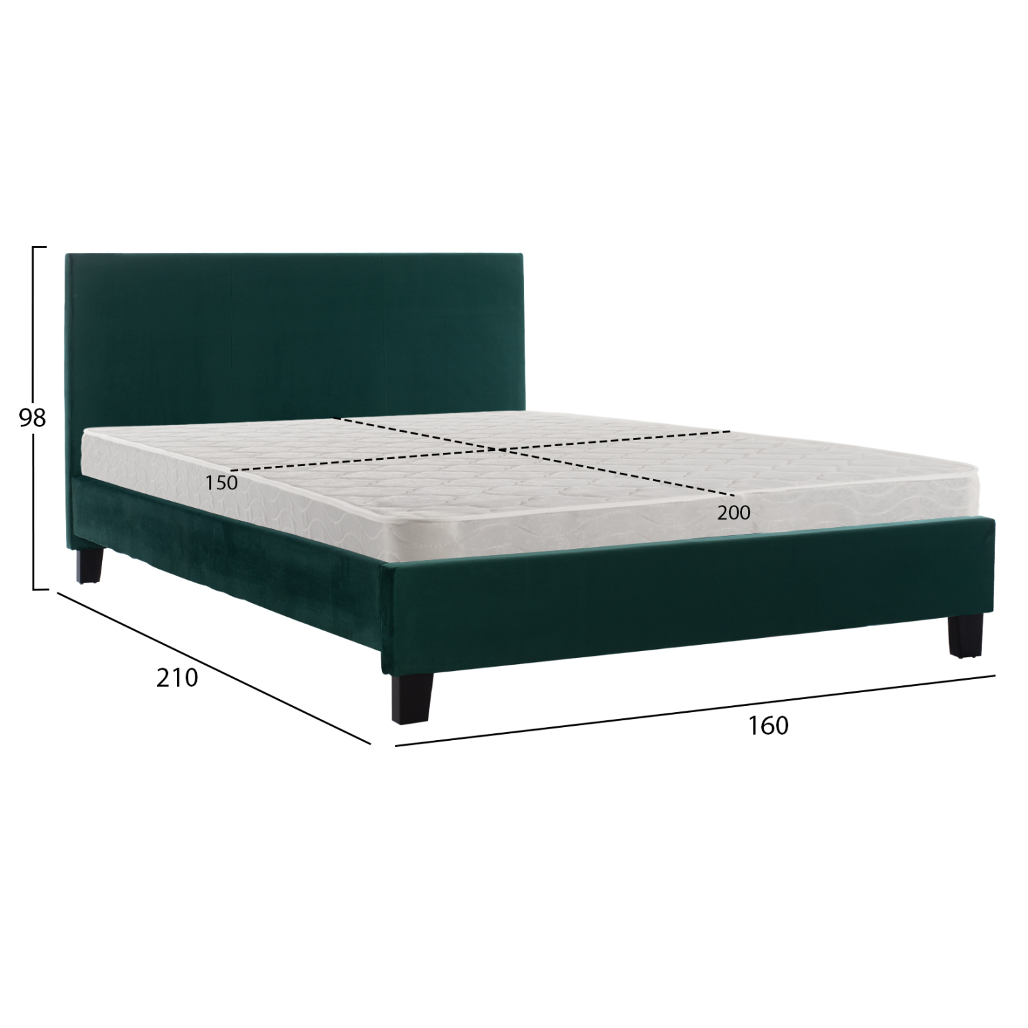 Το διπλό κρεβάτι FB921283.06 είναι επενδυμένο με βελούδο σε ΚΥΠΑΡΙΣΣΙ χρώμα. Το στρώμα που συνοδεύει το κρεβάτι τοποθετείται σε δύο σειρές ανατομικές τάβλες, είναι διπλής όψης και είναι τεχνολογίας continuous spring. Τα πόδια είναι σχετικά ψηλά από πολυπροπυλένιο σε μαύρο χρώμα.