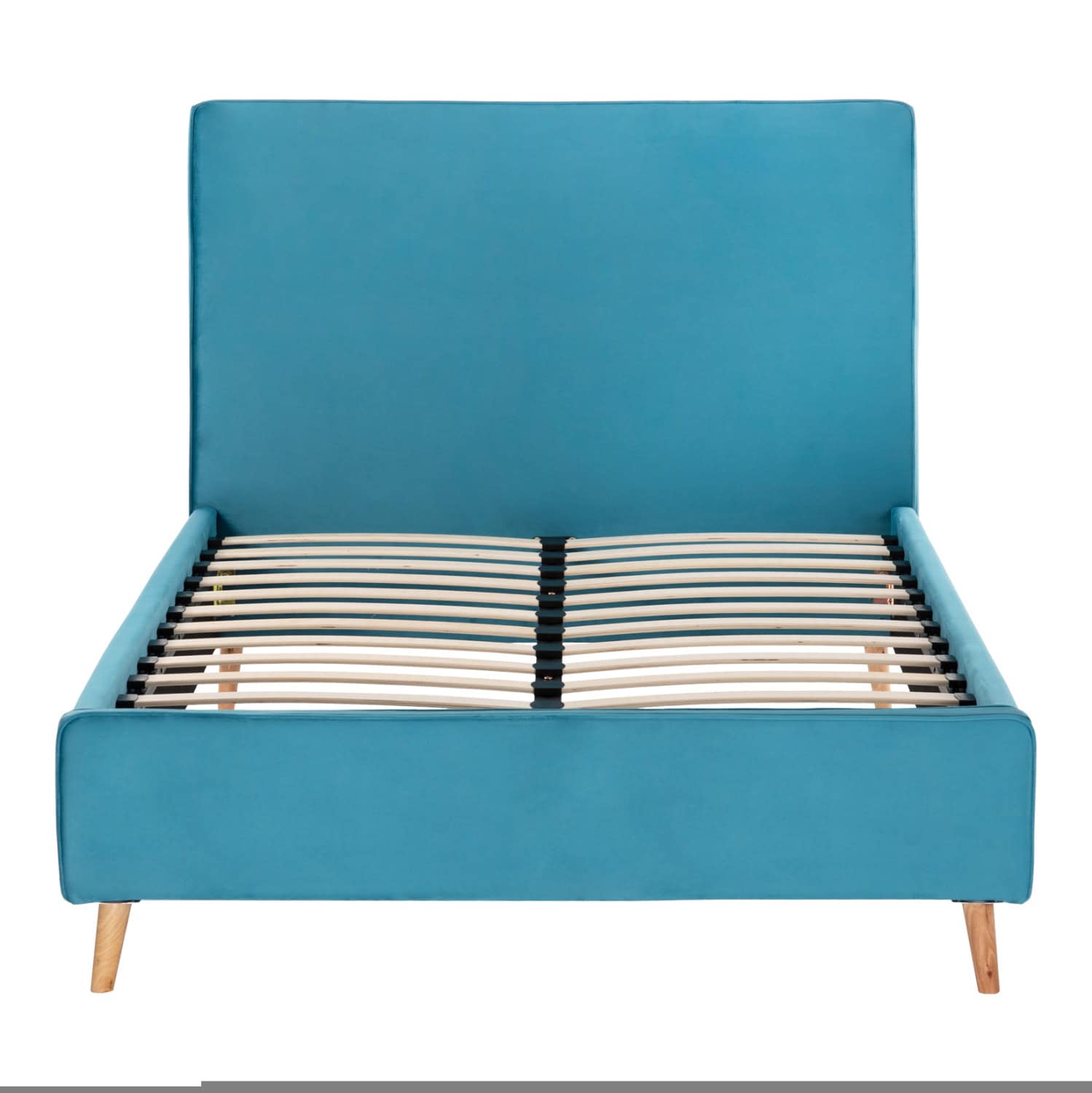 Με το κρεβάτι FB9598.08 μπορείτε να απολαμβάνετε κάθε στιγμή τον ύπνο σας. Έχει ψηλό κεφαλάρι με βελούδινη επένδυση σε χρώμα ΤΙΡΚΟΥΑΖ ενώ το στρώμα «κάθεται» πάνω σε ανατομικές τάβλες, ακολουθώντας τον παραδοσιακό τρόπο κατασκευής κρεβατιού. Μια μοντέρνα και λιτή πρόταση που θα ανανεώσει το υπνοδωμάτιό σας.