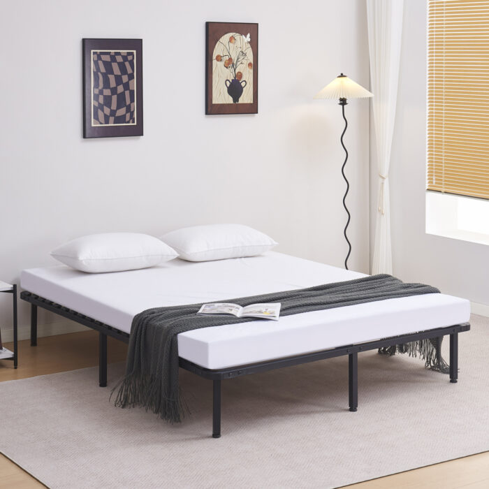 Το FB9694.01 είναι ένα πρακτικότατο μεταλλικό κρεβάτι-υπόστρωμα σε διπλή διάσταση και σε ΜΑΥΡΟ χρώμα. Το στρώμα τοποθετείται σε ξύλινες τάβλες που περιλαμβάνονται στην συσκευασία. Τα πόδια είναι ψηλά αφήνοντας άπλετο χώρο από κάτω είτε για εύκολο καθάρισμα, είτε για αποθήκευση αντικειμένων.