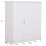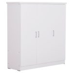 Η τρίφυλλη ντουλάπα FB92482.02 είναι μια πρακτικότατη, σχετικά κοντή (άρα ιδανική και για παιδικά δωμάτια), ντουλάπα που έχει φτιαχτεί με γνώμονα την όσο το δυνατόν καλύτερη εκμετάλλευση του χώρου. Έχει 3 πόρτες, αλλά με απροσδόκητα άνετους χώρους στο εσωτερικό της. Η πλευρά με την διπλή πόρτα διαθέτει ράφια και μια μεταλλική μπάρα για κρέμαση. Η πλευρά με την μονή πόρτα διαθέτει μόνο ράφια. Είναι κατασκευασμένη από μελαμίνη σε ΛΕΥΚΟ χρώμα και αισθητικά μπορεί να ταιριάξει με πολλά άλλα στυλ, χάρη και στις «καθαρές» γραμμές της.