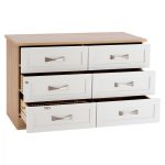 Διαθέτει έξι ευρύχωρα συρτάρια για να τοποθετήσετε τα προσωπικά σας αντικείμενα. Τα χερούλια είναι μεταλλικά σε ασημί απόχρωση.