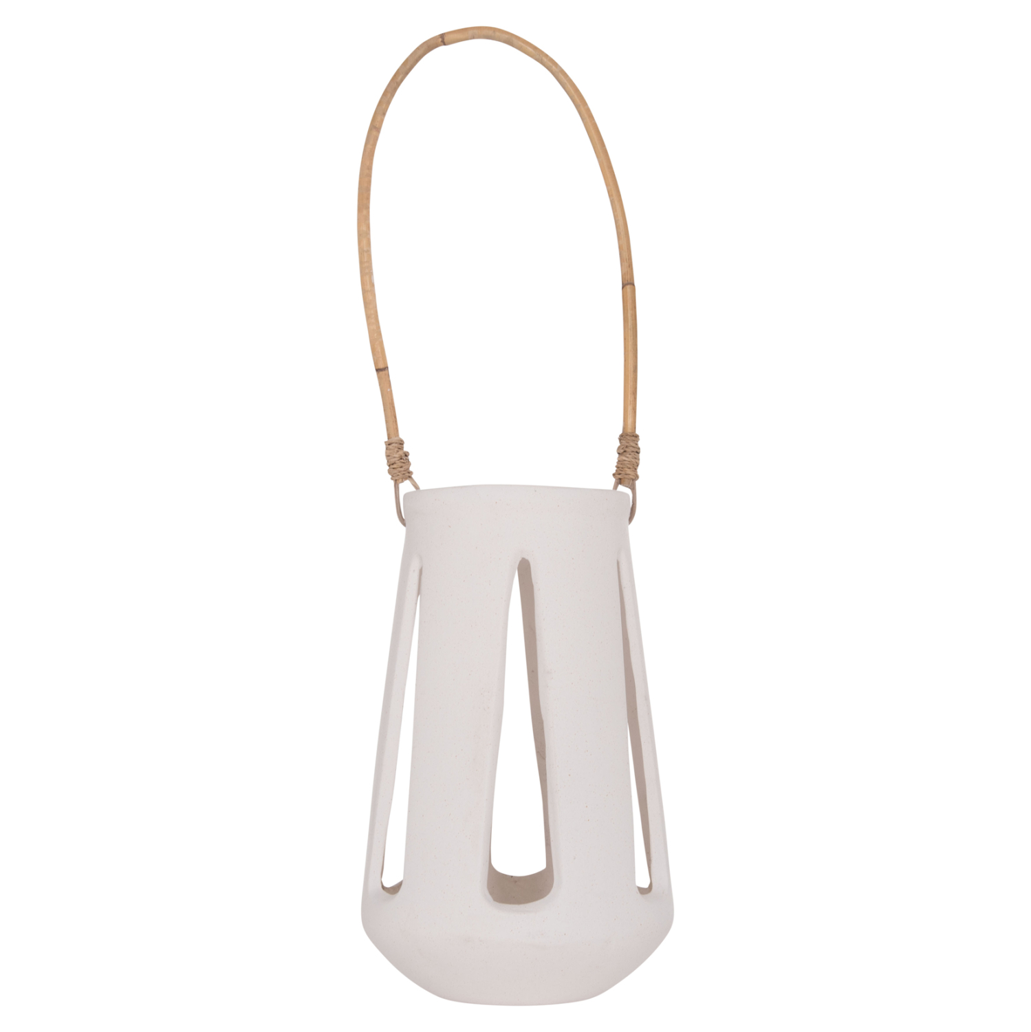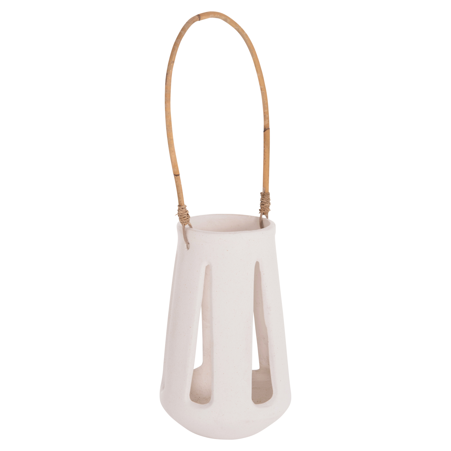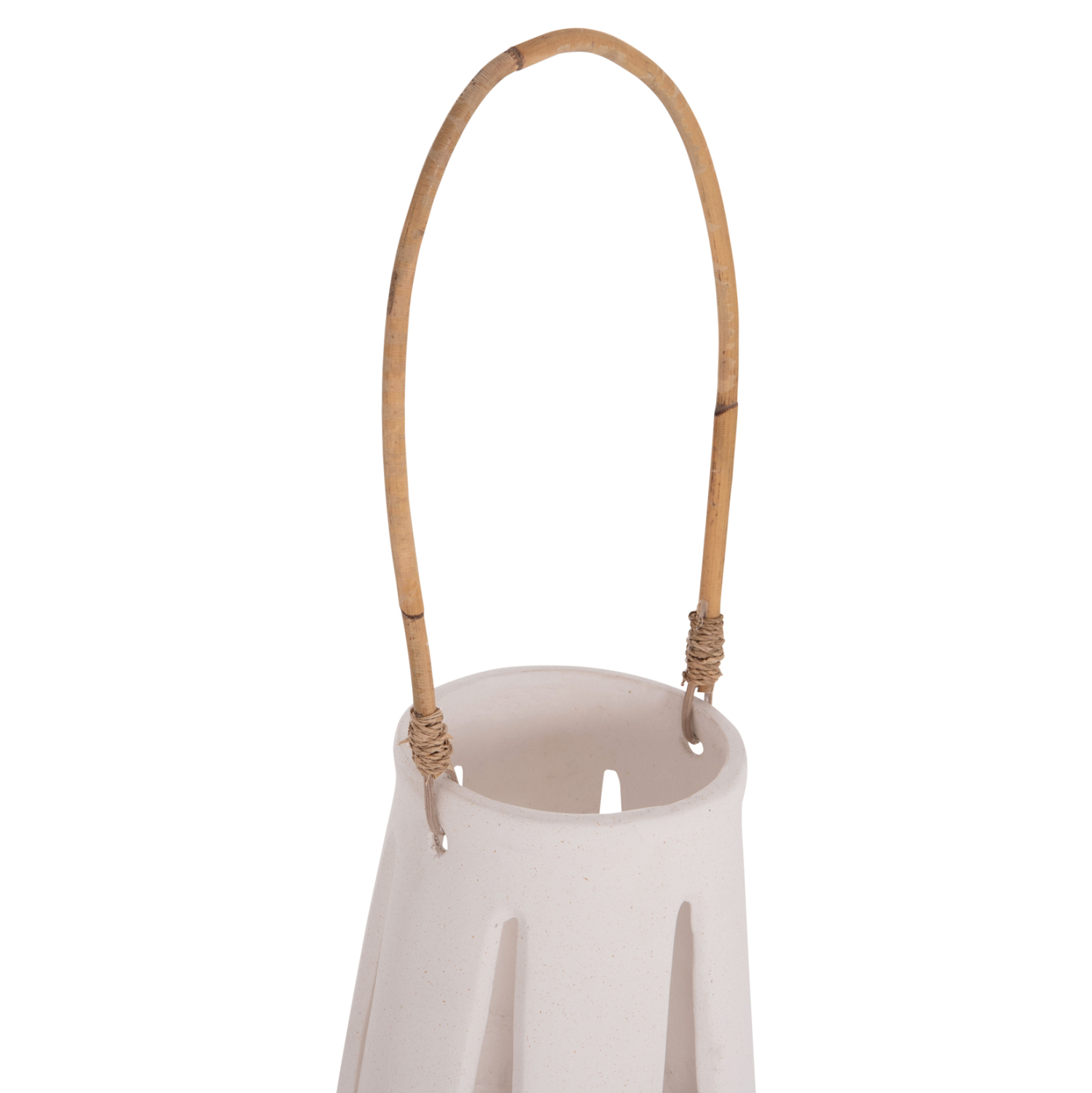 Το επιτραπέζιο διακοσμητικό φανάρι FB94696.02L είναι κατασκευασμένο από Fiber Cement σε ΛΕΥΚΟ χρώμα και διαθέτει χερούλι από φυσικό rattan για εύκολη μεταφορά. Το Fiber Cement ΔΕΝ είναι εύφλεκτο, που σημαίνει ότι μπορείτε να τοποθετήσετε αρκετά είδη κεριών, ωστόσο συνιστάται ΠΑΝΤΑ αυτό να γίνεται με μεγάλη προσοχή.