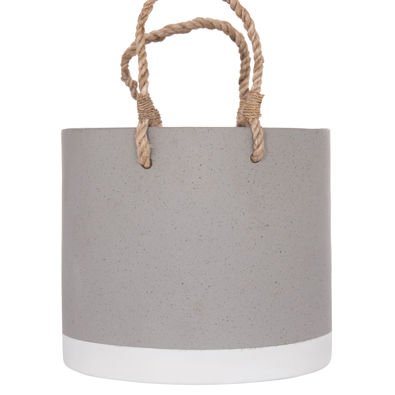 Η γλάστρα FB94690S είναι κατασκευασμένη από Fiber Cement σε ΓΚΡΙ χρώμα με ΛΕΥΚΟ περίγραμμα βάσης. Το ιδιαίτερο χαρακτηριστικό της είναι ότι διαθέτουν χερούλια από ανθεκτικό σχοινί για εύκολη μεταφορά.