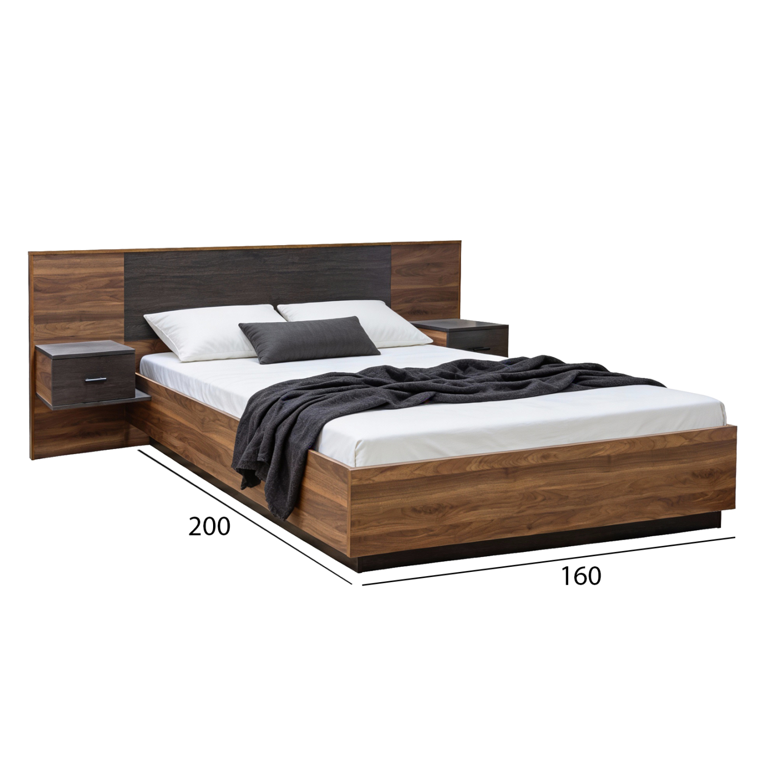 ΚΡΕΒΑΤΙ ΜΕ ΚΟΜΟΔΙΝΑ FB9744.11 ΜΕΛΑΜΙΝΗ ΣΕ ΚΑΡΥΔΙ/WENGE–ΣΤΡΩΜΑ 160×200εκ