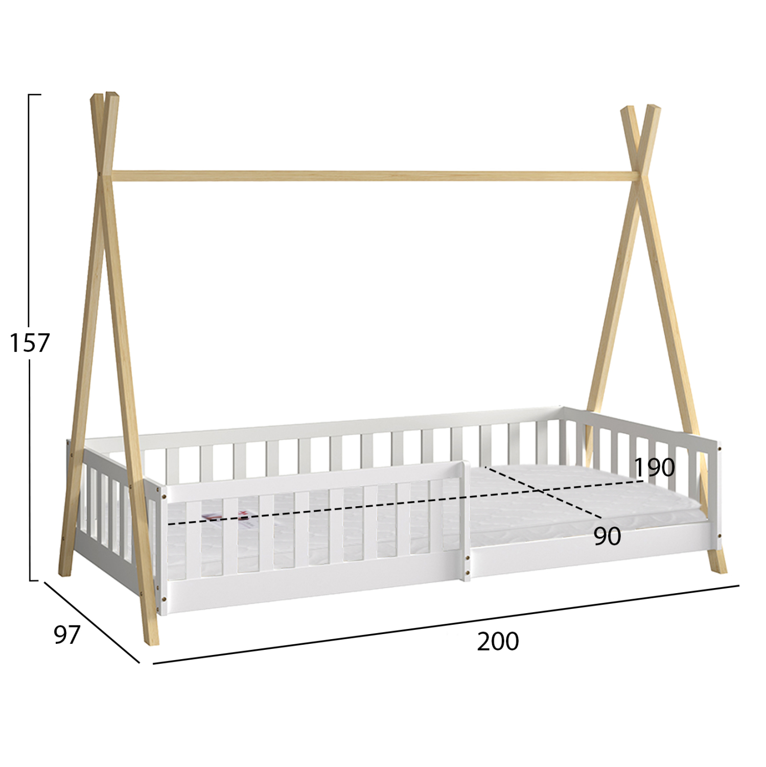 ΚΡΕΒΑΤΙ ΠΑΙΔΙΚΟ ΜΕ ΚΑΓΚΕΛΑ FB921325 ΠΕΥΚΟ ΛΕΥΚΟ/ΦΥΣΙΚΟ–ΜΕ ΣΤΡΩΜΑ 90×190εκ