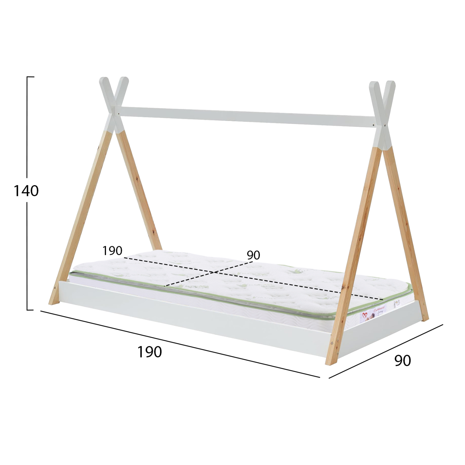 ΚΡΕΒΑΤΙ ΠΑΙΔΙΚΟ ΜΕ ΣΤΡΩΜΑ FB921308 ΞΥΛΟ ΠΕΥΚΟΥ ΦΥΣΙΚΟ-ΛΕΥΚΟ–ΣΤΡΩΜΑ 90×190εκ
