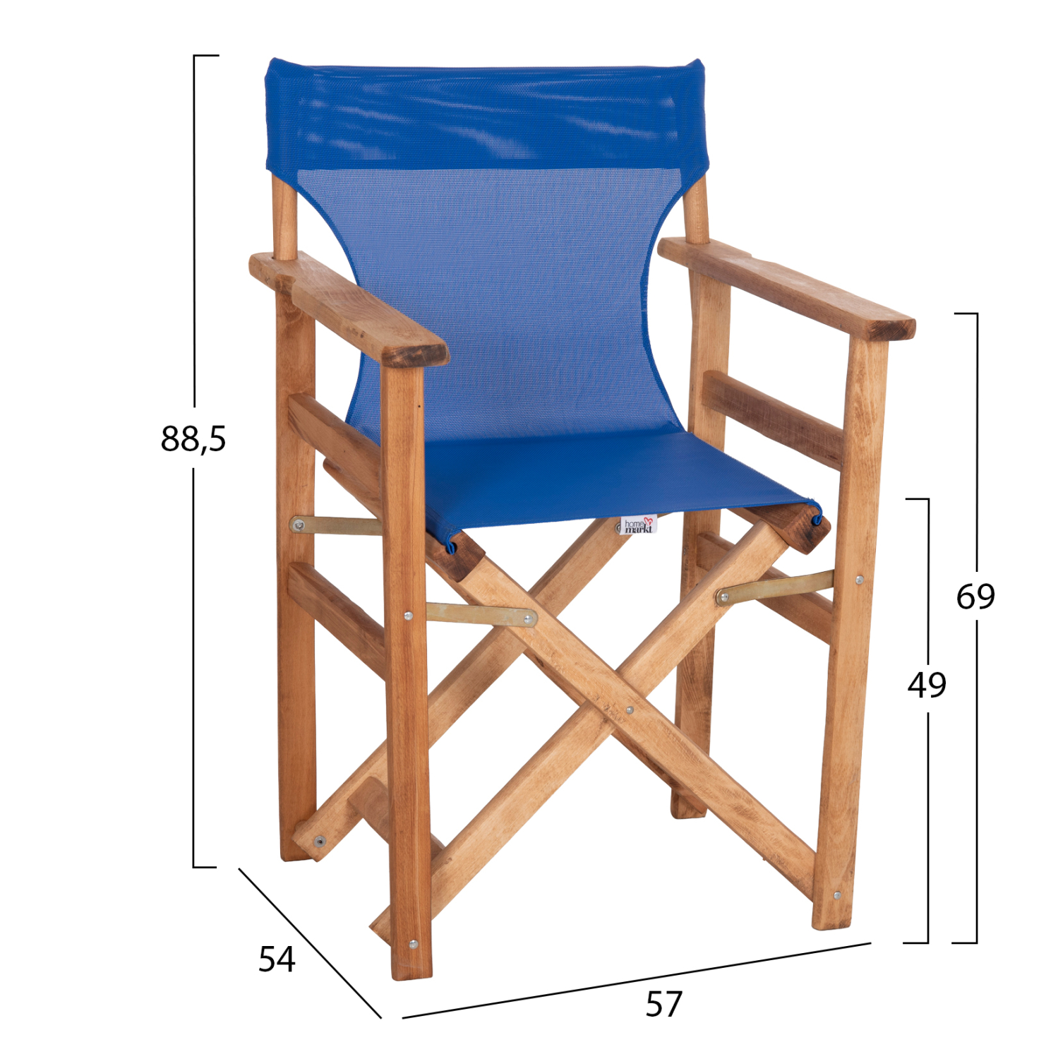Η πολυθρόνα σκηνοθέτη FB911764.01 είναι μια κλασική και σίγουρη επιλογή καθίσματος που προτιμάνε οι Έλληνες σε σύγκριση με άλλα καθίσματα για το καλοκαίρι και ειδικά για έξω. Δεν χρειάζεται ιδιαίτερη περιγραφή μιας και όλοι γνωρίζουν την πτυσσόμενη αυτή καρέκλα. Η FB911764.01 είναι ξύλινη εμποτισμού σε ΦΥΣΙΚΗ απόχρωση ενώ διαθέτει πανί TEXTILENE σε έντονο ΜΠΛΕ χρώμα. Μια ιδανική πρόταση για επαγγελματικούς χώρους και όχι μόνο.