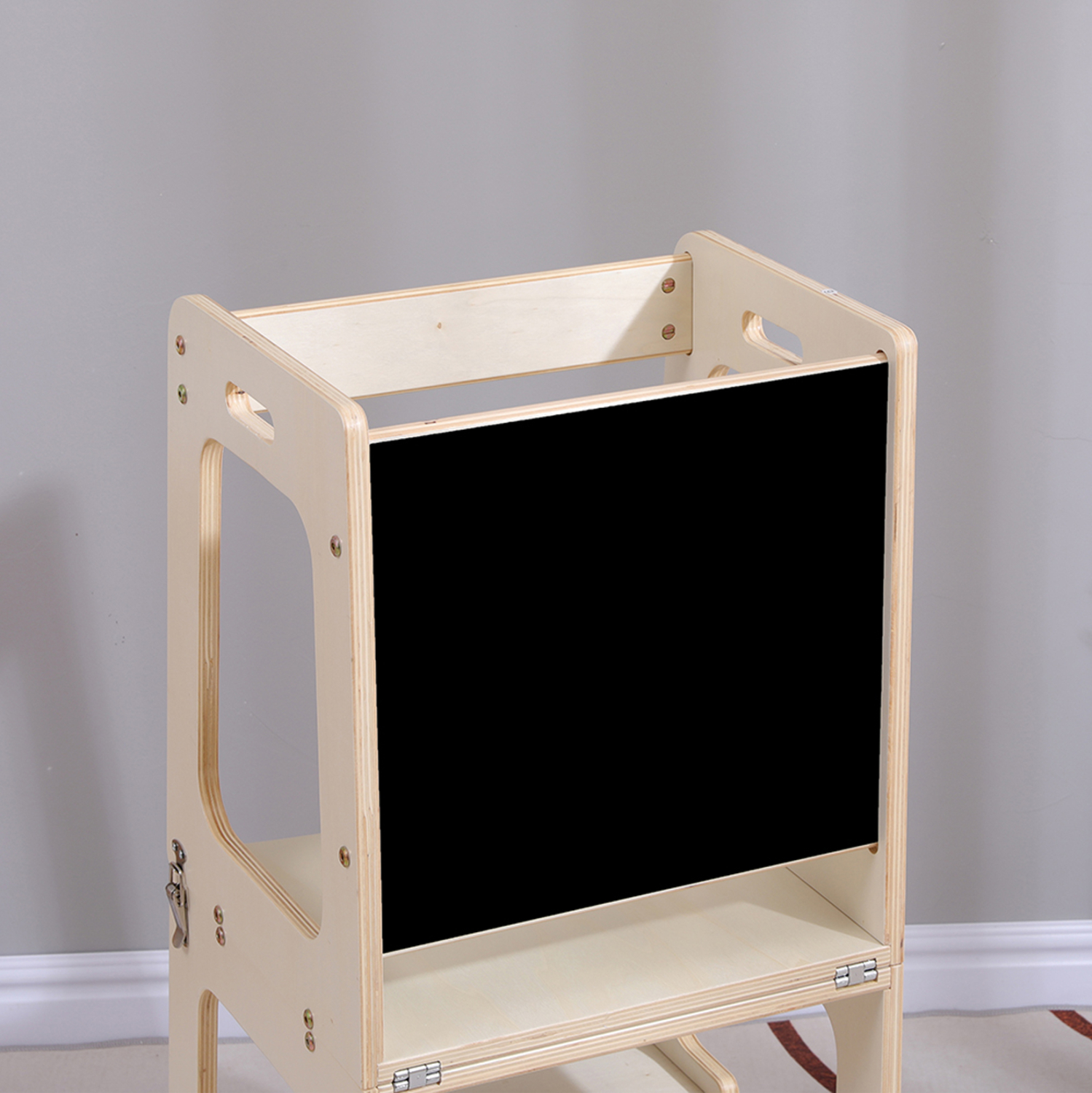 Η ενσωματωμένη επιφάνεια μαυροπίνακα μετατρέπει τον πύργο σε έναν μικρό δημιουργικό χώρο, ενισχύοντας τη φαντασία και τη μάθηση μέσα από το παιχνίδι.
