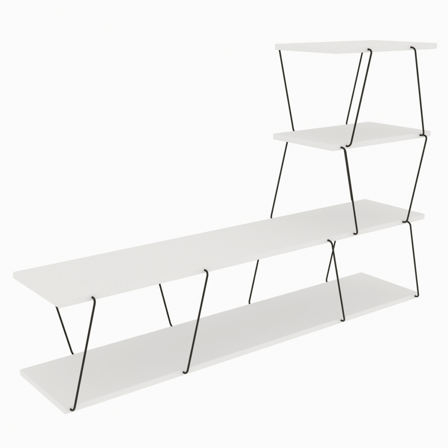 Διαθέτει τέσσερεις επιφάνειες τοποθέτησης αντικειμένων και για τις ηλεκτρονικές συσκευές σας με ενώσεις από μαύρες μεταλλικές ράβδους.
