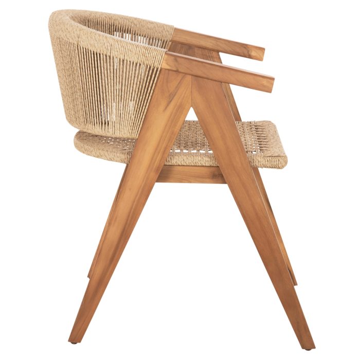 Η πολυθρόνα FB918238 έχει σχεδιασμό με ημικυκλική πλάτη και πόδια σε σχήμα Λ, ενώ τόσο η μεσαίου ύψους πλάτη όσο και το φαρδύ κάθισμα αποτελούνται από αριστοτεχνικά πλεγμένο συνθετικό σχοινί άριστης ποιότητας σε φυσικό χρώμα. Το ξύλο έχει, επίσης, φυσικό χρώμα που μπορεί άνετα να συνδυαστεί με διάφορα διακοσμητικά μοτίβα. Μια πολυθρόνα που με ένα ταιριαστό τραπέζι μπορεί να απογειώσει κάθε χώρο που θα τοποθετηθεί.