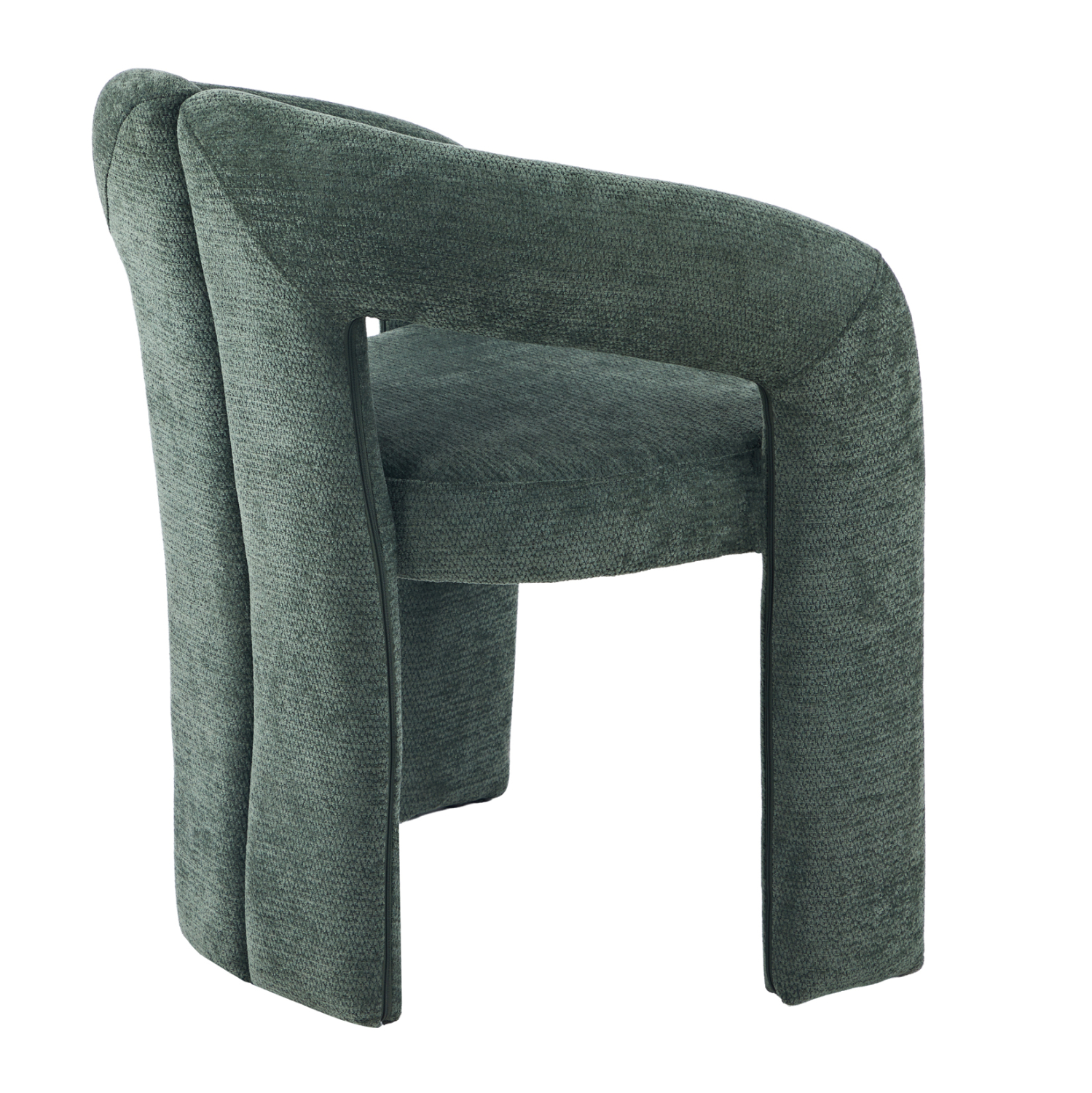 Η FB918362.04 είναι μια πολυθρόνα τραπεζαρίας με μοντέρνο και απόλυτα συμμετρικό design πλάτης που προσδίδει ισορροπία και κομψότητα στον χώρο. Η επένδυση με ΠΡΑΣΙΝΟ λινό ύφασμα σε ολόκληρη την πολυθρόνα χαρίζει φυσική υφή, διαχρονικό χαρακτήρα και αίσθηση υψηλής ποιότητας. Οι καθαρές γραμμές και η αρμονική γεωμετρία της αναδεικνύει κάθε σύγχρονη τραπεζαρία, προσφέροντας ταυτόχρονα άνεση και στιλ σε κάθε γεύμα.