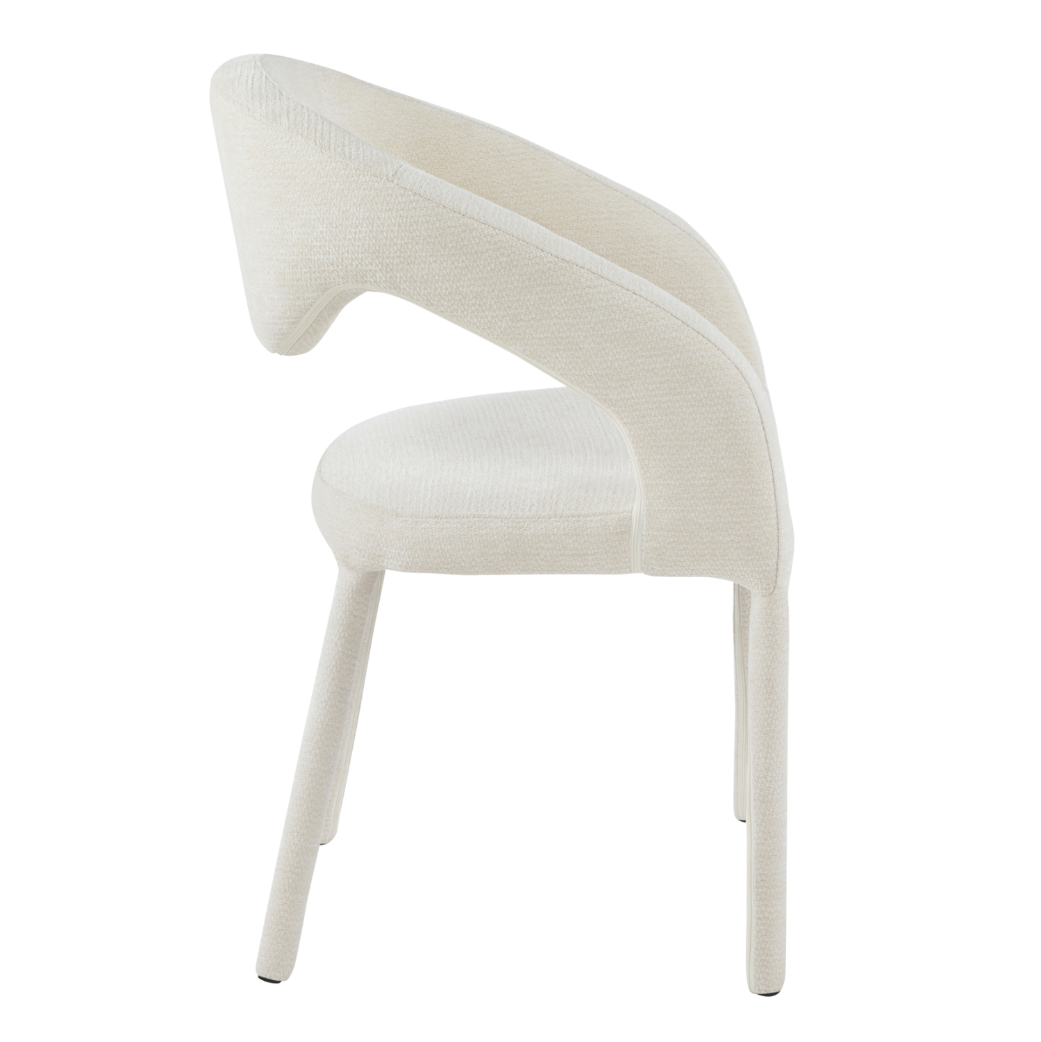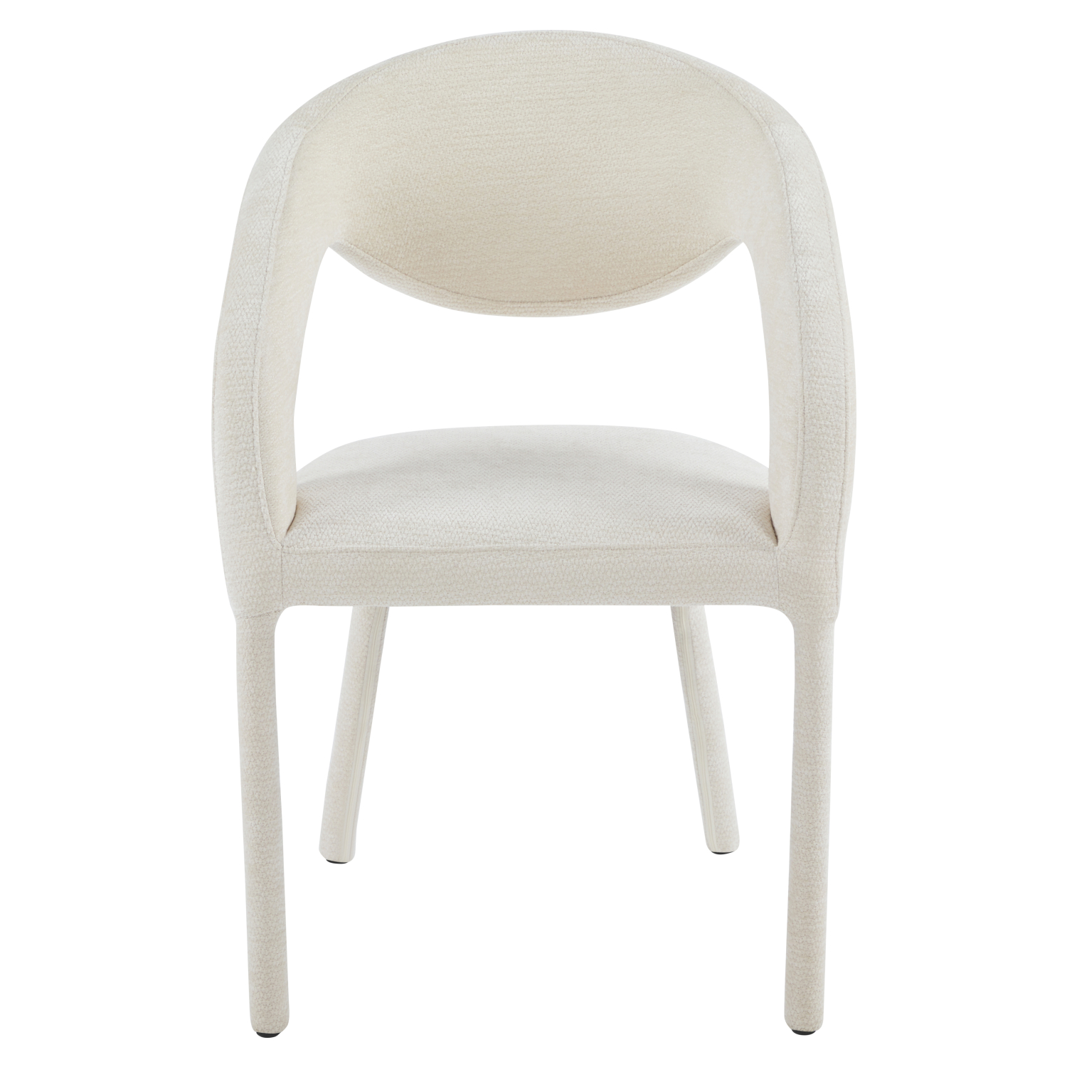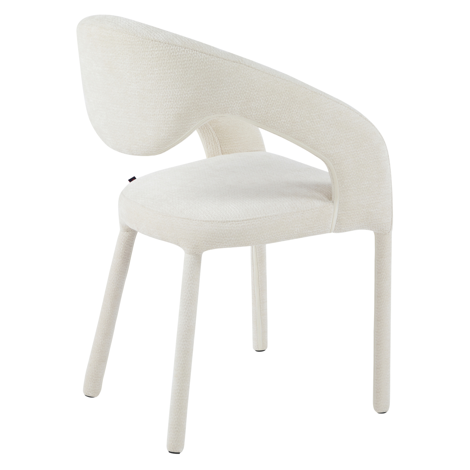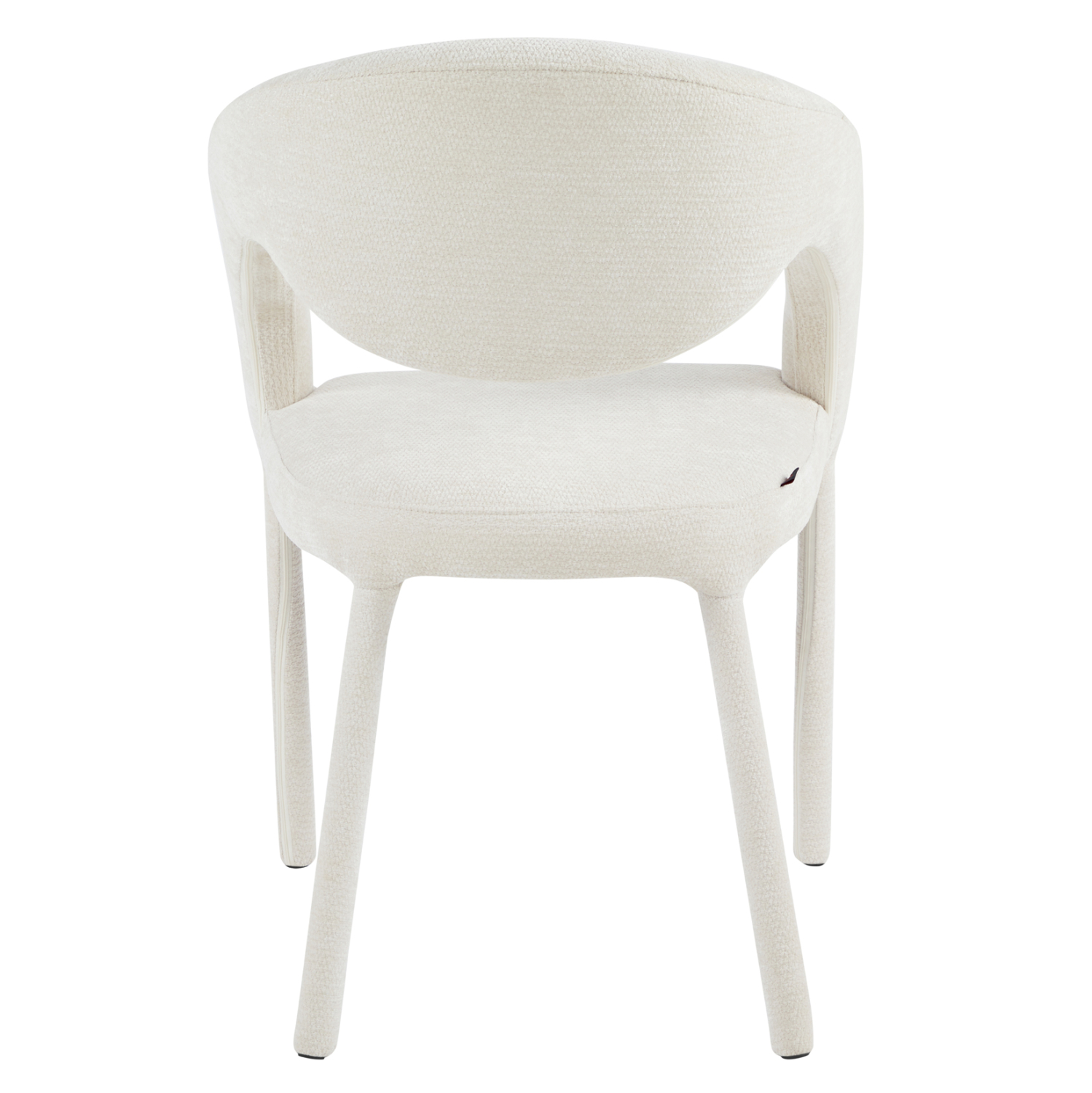 Η πολυθρόνα τραπεζαρίας FB918363.02 έχει μοντέρνο design που ξεχωρίζει χάρη στην ιδιαίτερη πλάτη, η οποία στηρίζεται ημικυκλικά στα μπράτσα ως φυσική συνέχειά τους, δημιουργώντας την αίσθηση ότι “αιωρείται”. Ο ενιαίος, καμπυλωτός σχεδιασμός προσδίδει ρευστότητα και κομψότητα, αναβαθμίζοντας αισθητικά κάθε τραπεζαρία. Η επένδυση με ΕΚΡΟΥ λινό ύφασμα σε ολόκληρη την πολυθρόνα χαρίζει φυσική υφή και διαχρονική φινέτσα. Ένα κομμάτι που συνδυάζει αρχιτεκτονική γραμμή, άνεση και σύγχρονο χαρακτήρα σε απόλυτη αρμονία.