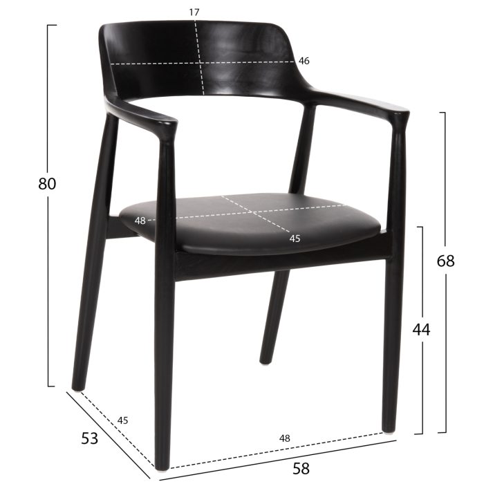 Η πολυθρόνα τραπεζαρίας εσωτερικού χώρου FB99634.02 είναι μια πολυθρόνα απαράμιλλης ομορφιάς. Ο πανέμορφος σκελετός της είναι από ποιοτικό ξύλο, ενώ το φαρδύ κάθισμα διαθέτει μαξιλαράκι με επένδυση τεχνητού δέρματος. Οι σχεδιαστικές γραμμές της πολυθρόνας είναι κομψές και με γνώμονα την άνεση του χρήστη, με χαρακτηριστικό παράδειγμα τα ψηλά μπράτσα της πολυθρόνας. Το ξύλο έχει εντυπωσιακό ΜΑΥΡΟ ΒΙΝΥΛΙΟΥ χρώμα που μαγνητίζει τα βλέμματα. Συνδυάστε την με ένα ταιριαστό τραπέζι και δημιουργήστε την εντυπωσιακή τραπεζαρία που πάντα θέλατε.