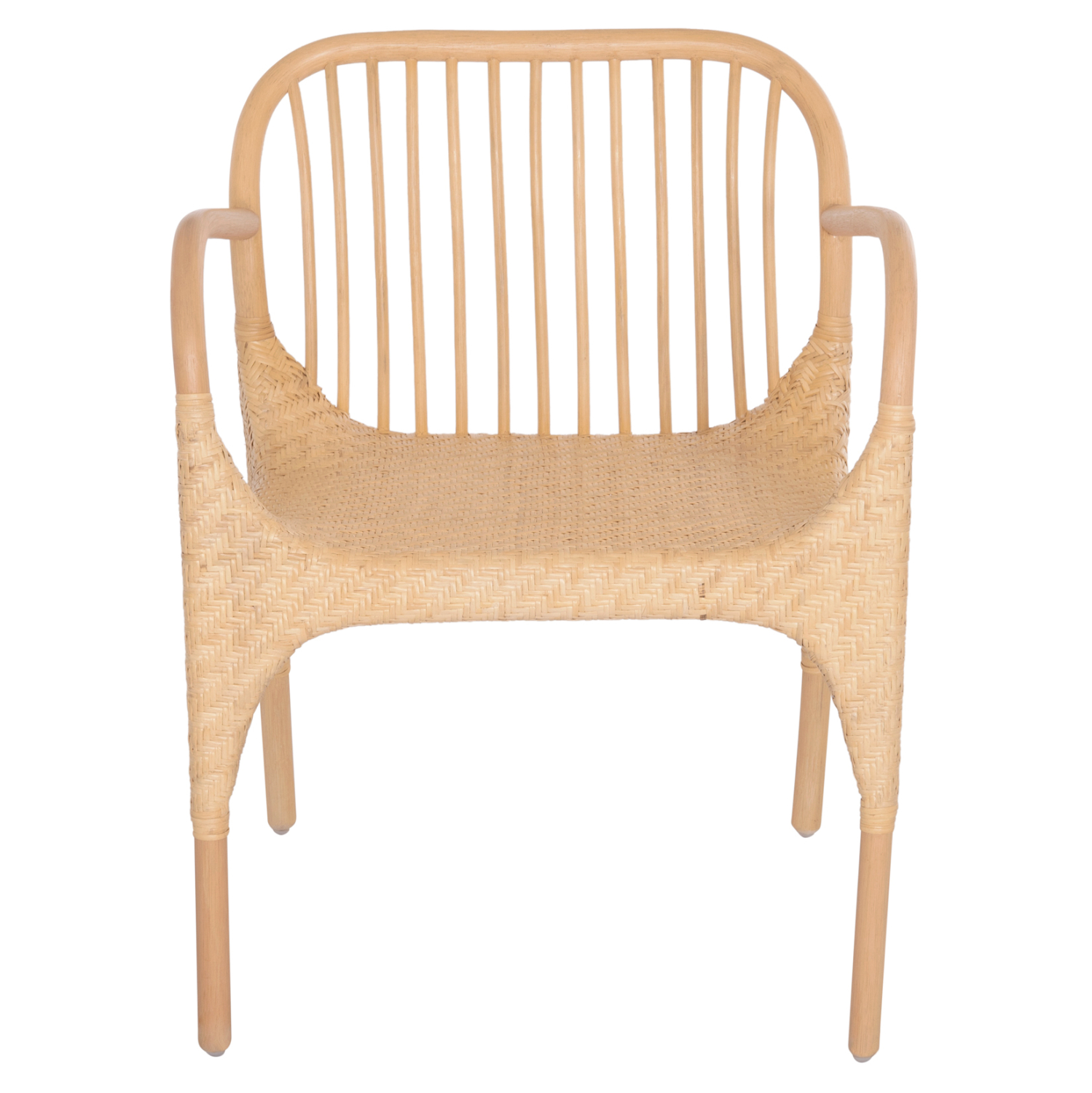 Η πολυθρόνα τραπεζαρίας FB99957.01 είναι για εσωτερικούς χώρους, και σχεδιαστικά ακολουθεί παραδοσιακές απλές γραμμές. Είναι κατασκευασμένη εξολοκλήρου από φυσικό Rattan σε ΦΥΣΙΚΟ χρώμα, ενώ ειδικά στο κάθισμα το Rattan είναι σε μορφή ψάθας, δίνοντας μια διαφορετική όψη στην πολυθρόνα.