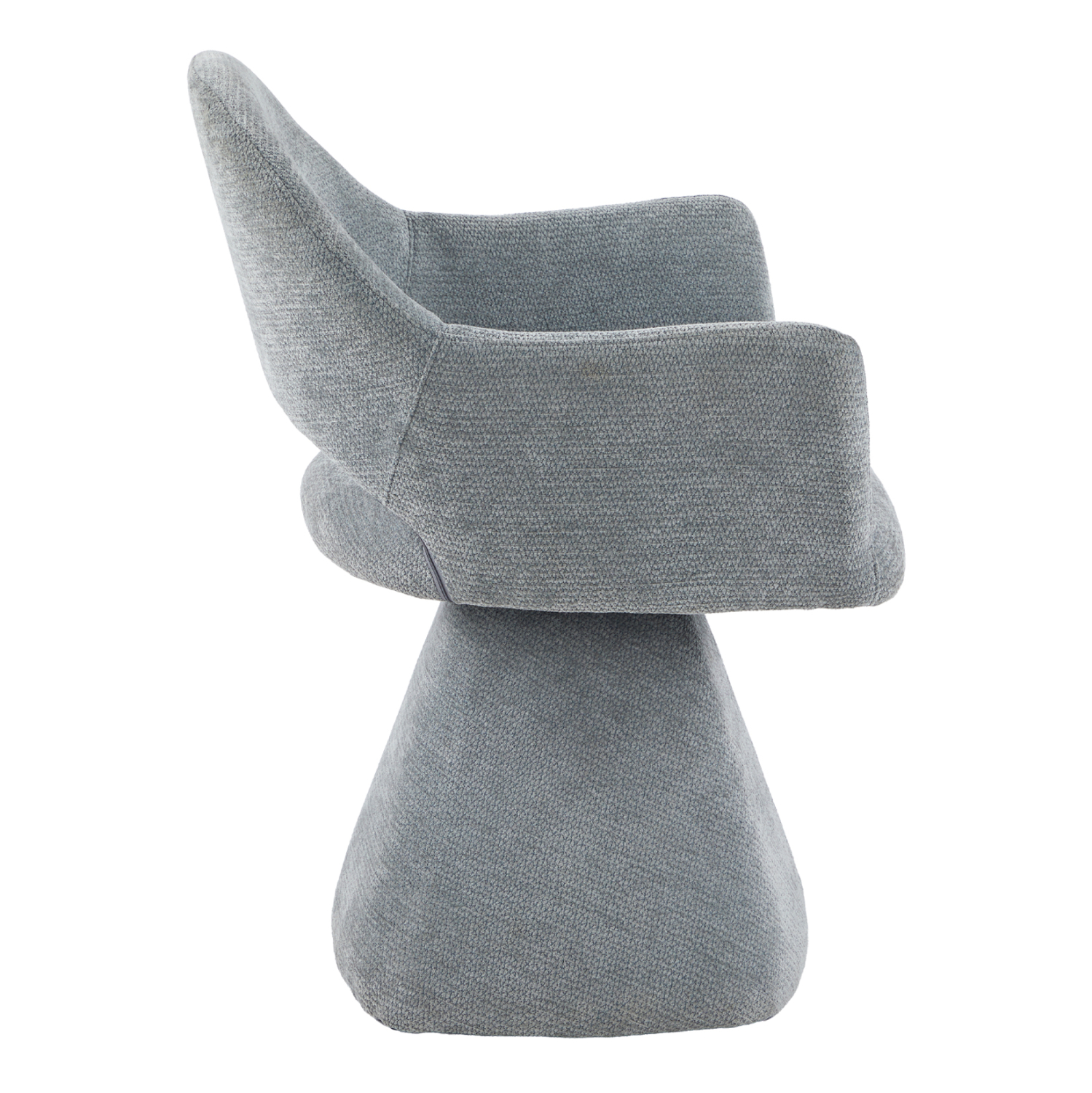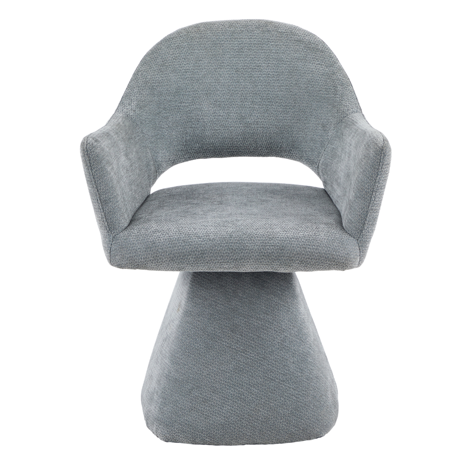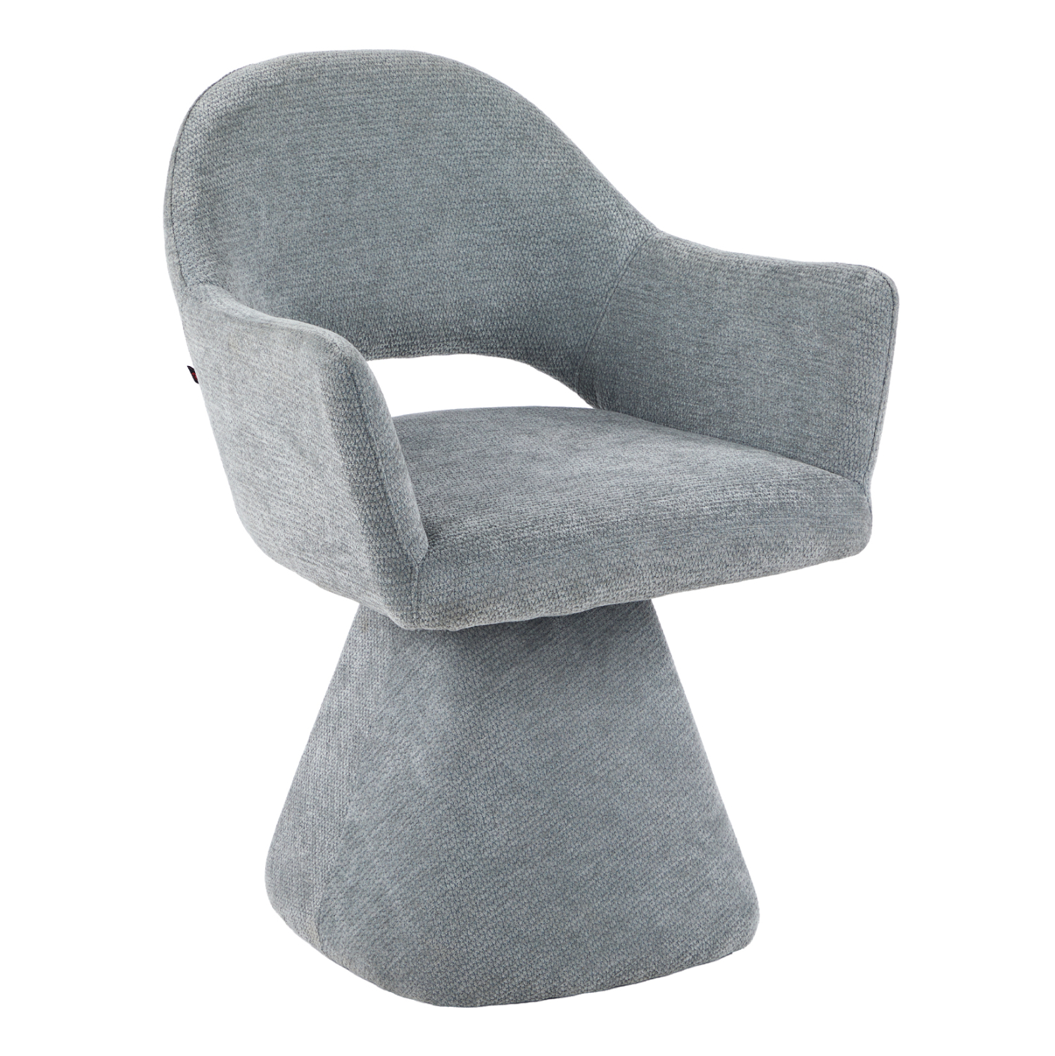 Σας παρουσιάζουμε την FB918360.01. Μια premium περιστρεφόμενη πολυθρόνα τραπεζαρίας που συνδυάζει κομψότητα και λειτουργικότητα σε απόλυτη ισορροπία. Επενδυμένη εξολοκλήρου με λινό ύφασμα σε ΓΚΡΙ απόχρωση, αποπνέει φωτεινότητα και διαχρονική φινέτσα. Η ενιαία πλάτη που συνεχίζει ομαλά στα μπράτσα δημιουργεί ένα αρμονικό κάθισμα που προσφέρει αίσθηση άνεσης και πολυτέλειας. Η κωνική, πυραμιδοειδής βάση αντικαθιστά τα κλασικά πόδια, προσδίδοντας αρχιτεκτονικό χαρακτήρα, ενώ η περιστροφή 360° χωρίς επαναφορά ενισχύει την ελευθερία κίνησης και τη σύγχρονη εμπειρία χρήσης.