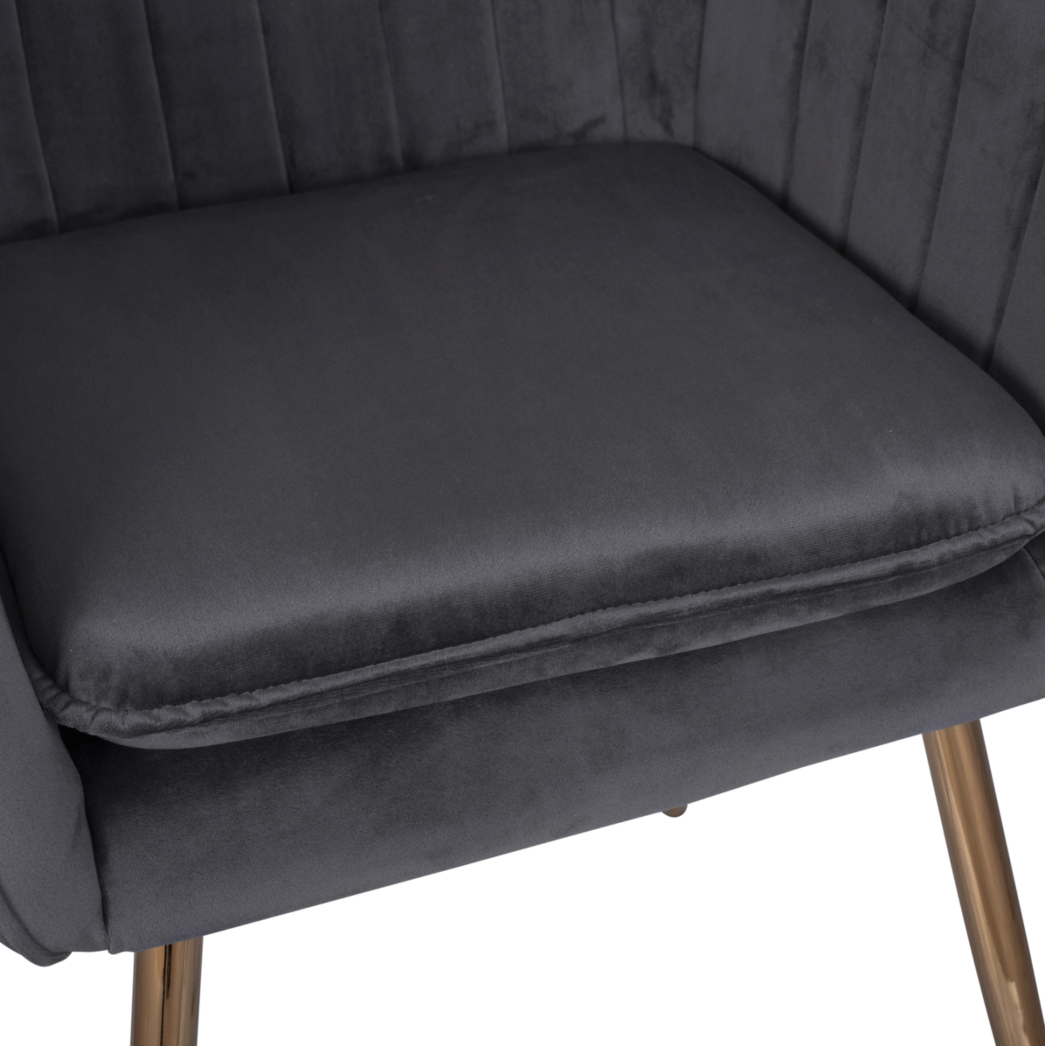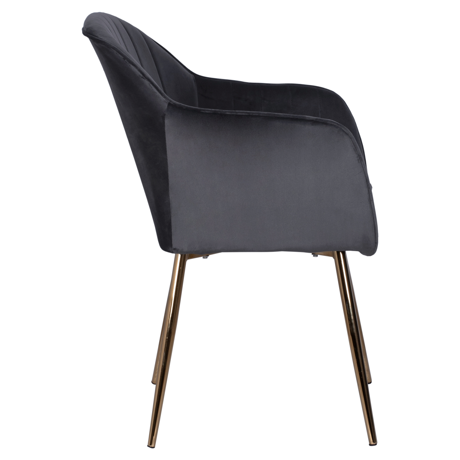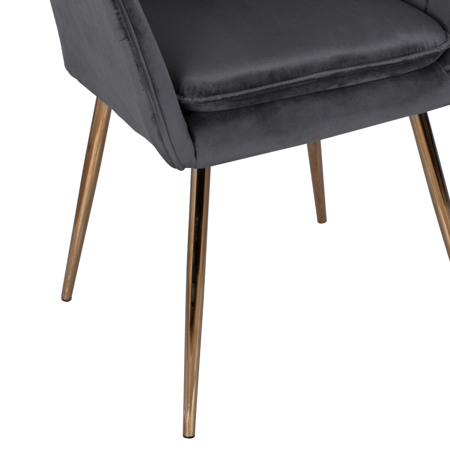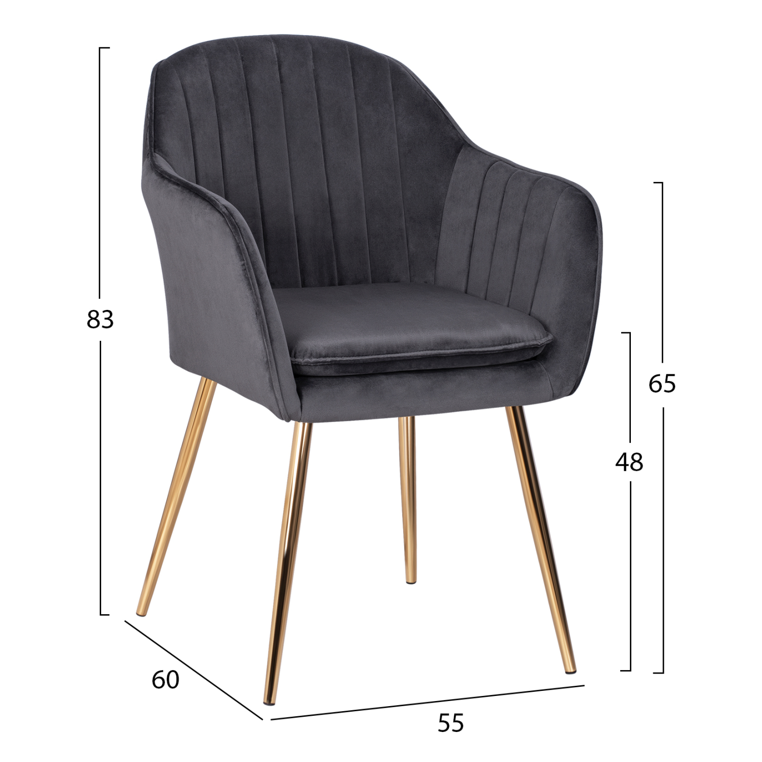 Η πολυθρόνα FB98523.01 είναι επενδυμένη με ύφασμα βελούδο σε γκρι απόχρωση και μεταλλικό σκελετό σε χρυσή απόχρωση.