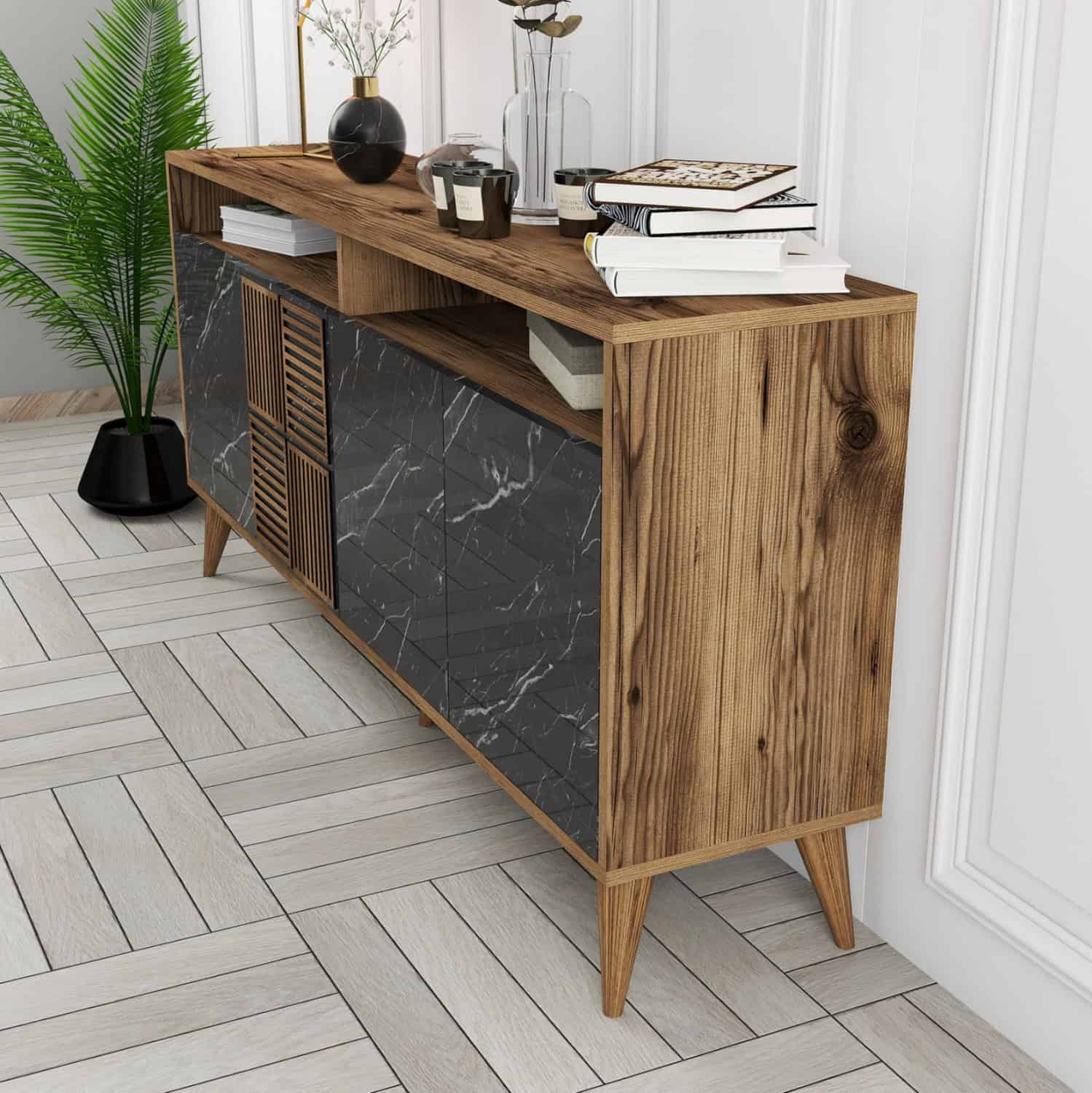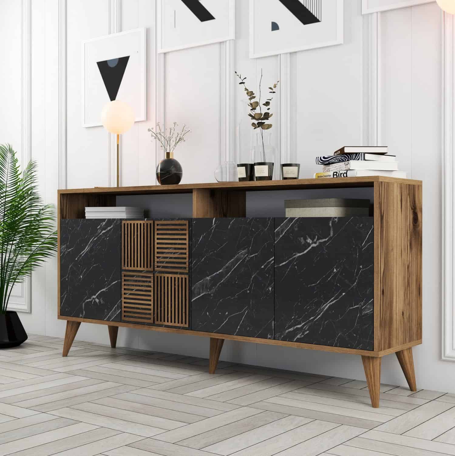 ΜΠΟΥΦΕΣ ΜΕΛΑΜΙΝΗΣ ΚΑΡΥΔΙ ΜΕ ΟΨΗ ΜΑΥΡΟΥ ΜΑΡΜΑΡΟΥ FB99506.02 160x35x78Υ εκ.