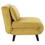 Η πολυθρόνα-κρεβάτι FB98425.23 είναι η επιτομή της πρακτικότητας και του όμορφου στυλ. Στηρίζεται σε 4 ξύλινα μαύρα πόδια, ενώ όλη η επένδυσή της έχει γίνει με λαδί βελούδινο ύφασμα με ρέλι στις ραφές. Το στοιχείο που την κάνει να ξεχωρίζει είναι ότι με μια απλή κίνηση μπορεί να μετατραπεί σε κρεβάτι προσφέροντας μια ποιοτική λύση για απρόσμενες διανυκτερεύσεις, ή ακόμα και ως δεύτερο κρεβάτι σε σπίτια με περιορισμένο χώρο, όπως φοιτητικά σπίτια.