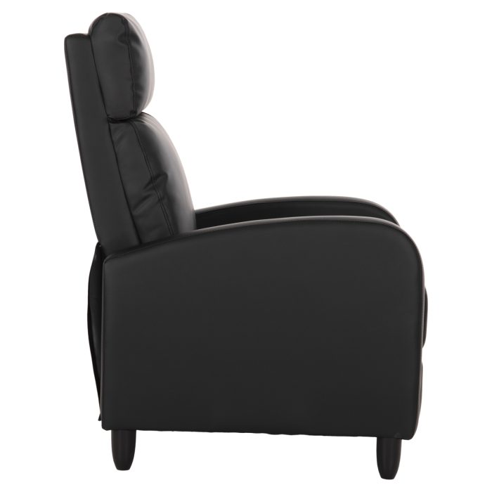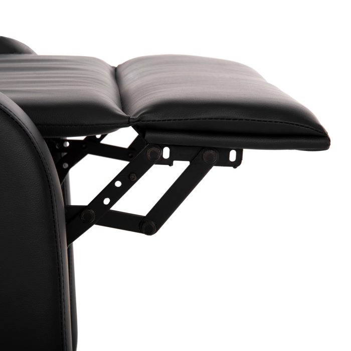 Η FB99782.11 με επένδυση από ΜΑΥΡΟ PU leather, είναι μια πολυθρόνα που θα προσφέρει ατελείωτες ώρες χαλάρωσης και ικανοποίησης. Η πλάτη είναι ψηλή και το κάθισμα βαθύ, ενώ όλη η πολυθρόνα στηρίζεται σε 4 μαύρα στιβαρά πόδια ενισχυμένου πολυαιθυλενίου. Και όταν γυρνάτε από την δουλειά και θέλετε να χαλαρώσετε μπροστά στην τηλεόρασή σας, ή να διαβάσετε την εφημερίδα σας, ή το αγαπημένο σας βιβλίο μπροστά στο παράθυρο, τότε απλά ρίξτε το βάρος σας στην πλάτη και ο μηχανισμός relax θα αναλάβει την ανάκλιση της ενώ ταυτόχρονα θα ανέβει και το ενσωματωμένο υποπόδιο προσφέροντας την απόλυτη χαλάρωση. Η πλάτη επανέρχεται στην θέση της σπρώχνοντας ελαφρά και πάλι το υποπόδιο στην αρχική του θέση.