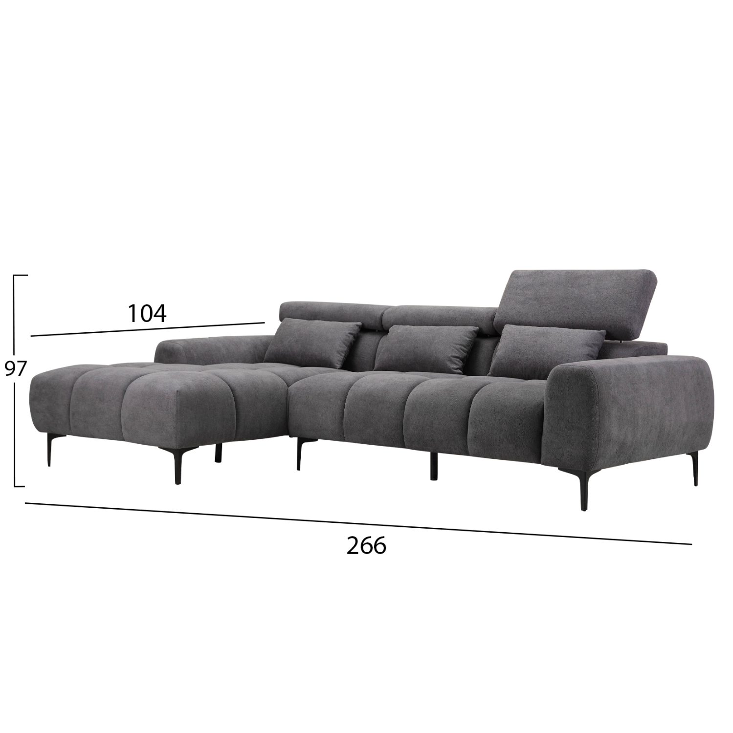 ΚΑΝΑΠΕΣ ΑΡΙΣΤΕΡΗ ΓΩΝΙΑ FB93267.02L ΣΥΝΘ.SUEDE ΓΚΡΙ 264x175x99Υεκ.