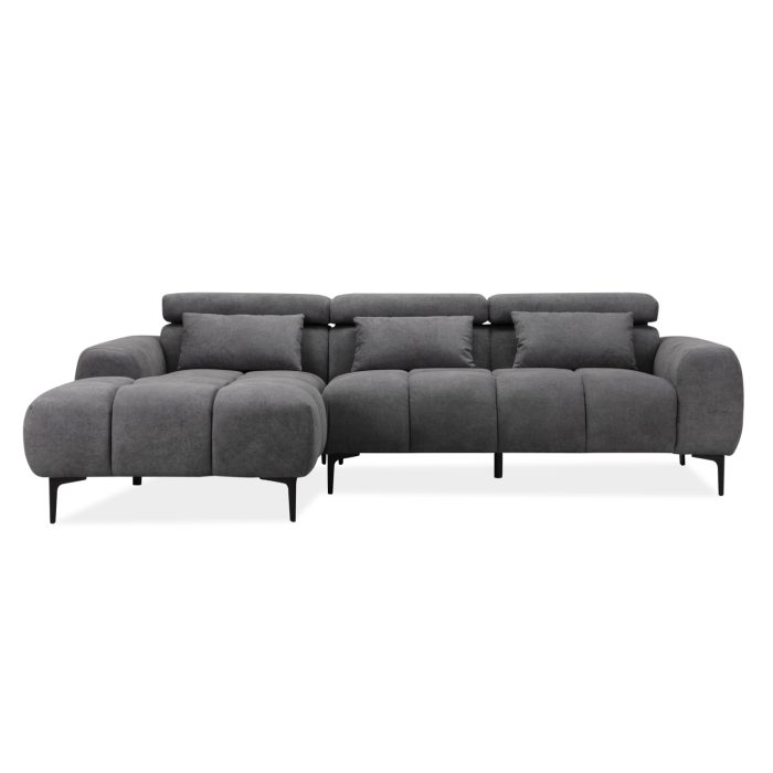 Σας παρουσιάζουμε τον FB93267.02L. Έναν ολοκαίνουργιο γωνιακό καναπέ (αριστερή γωνία) επενδυμένο με εξαιρετικής ποιότητας συνθετικό ύφασμα Suede σε ΓΚΡΙ χρώμα. Ο καναπές διαθέτει ψηλά μεταλλικά πόδια σε μαύρο χρώμα και κάθισμα με pocket springs σε συνδυασμό με αφρώδη υλικά. Η άνεση που προσφέρει επιτείνεται κι από το γεγονός ότι τα μαξιλάρια κεφαλής στο επάνω μέρος της πλάτης έχουν ρυθμιζόμενη κλίση, ενώ το σετ συμπληρώνουν και 3 μικρά διακοσμητικά μαξιλάρια.