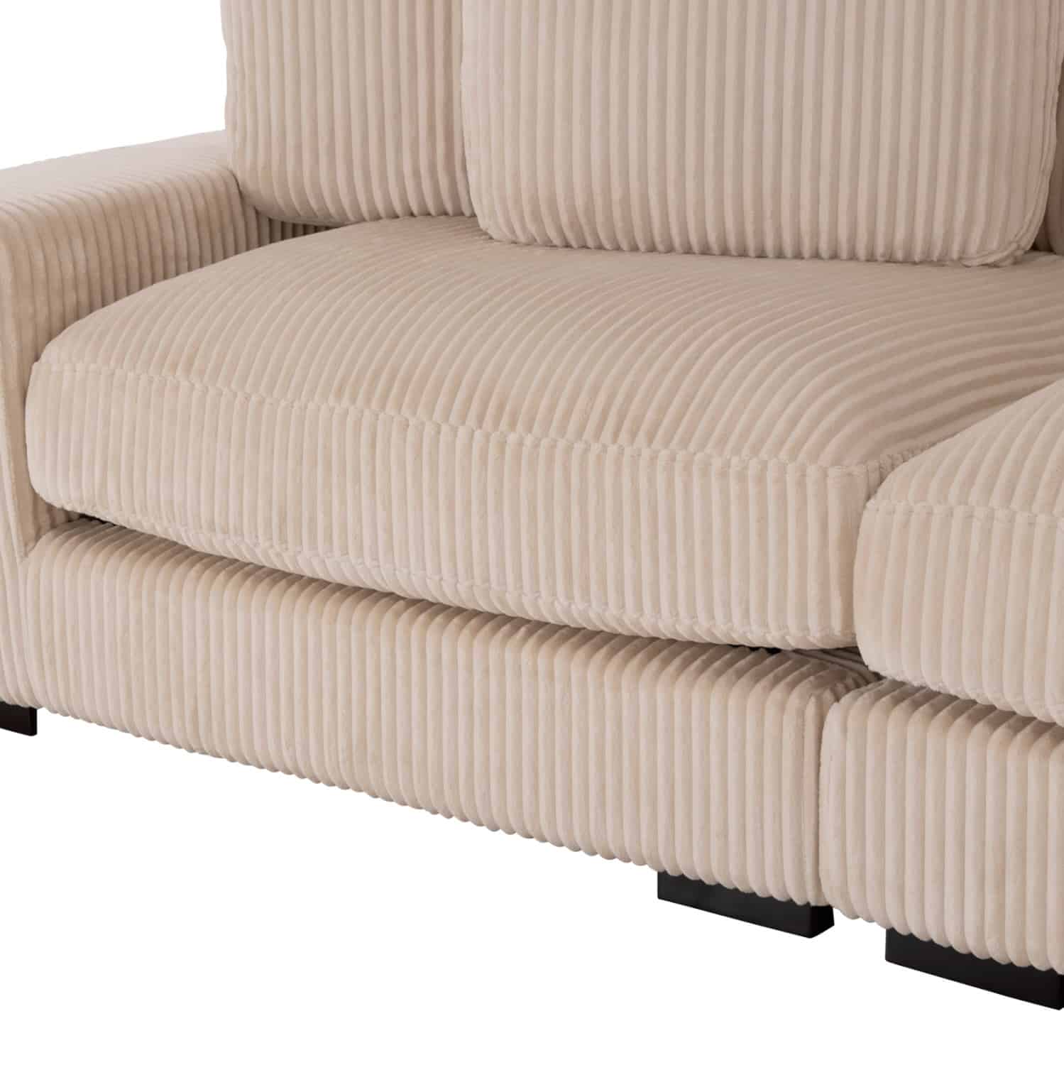 Ο FB93287.02R είναι ένας μεγάλος καναπές σε διαμόρφωση δεξιάς γωνίας (όπως τον κοιτάς), και με χαμηλά και φαρδιά μαύρα πόδια. Παραδίδεται με 5 συνοδευτικά μαξιλαράκια και είναι επενδυμένος με όμορφο ριγέ (κοτλέ) ύφασμα σε ΜΠΕΖ χρώμα. Αποτελεί ιδανική επιλογή για όσους αναζητούν έναν μεγάλο και ποιοτικό καναπέ!