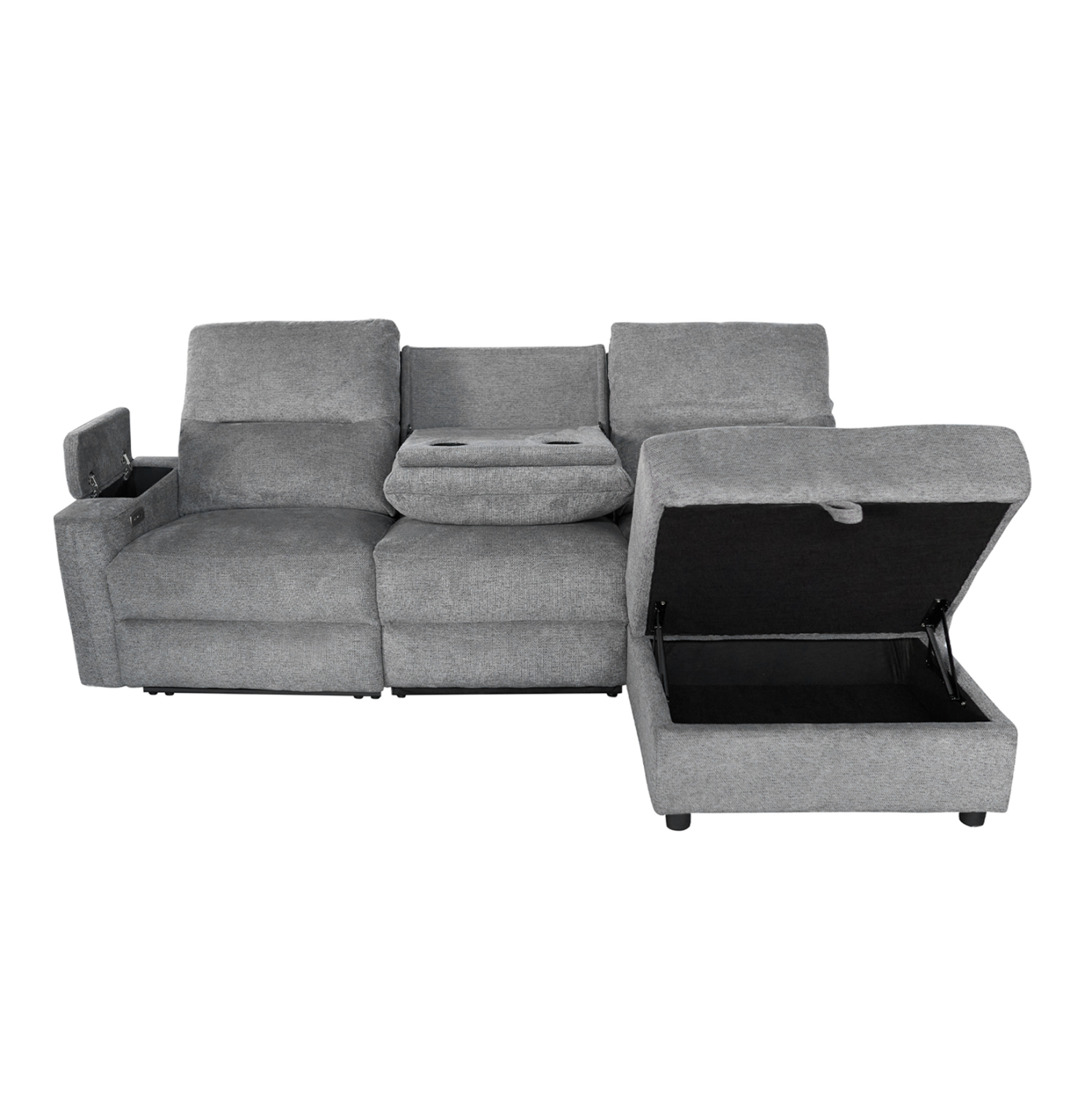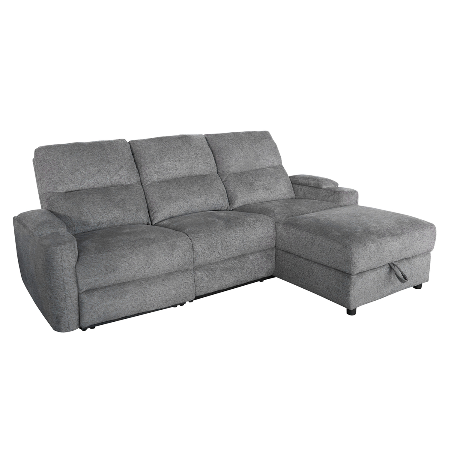 Τριθέσιος Δεξιός Γωνιακός Καναπές FB93308.03R– ΓΚΡΙ Ύφασμα, με Ηλεκτρικό Ανακλινόμενο Κάθισμα, Αποθηκευτικό Χώρο & Πτυσσόμενο Τραπέζι