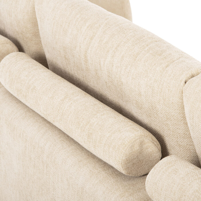Σας παρουσιάζουμε τον FB93266.01L, έναν υπέροχο μεγάλο καναπέ σε διαμόρφωση ΑΡΙΣΤΕΡΗΣ γωνίας (όπως τον κοιτάς) επενδυμένο με ποιοτικό ύφασμα σε ΕΚΡΟΥ χρώμα. Ξεκινώντας από το design, ο καναπές φτάνει μέχρι πολύ χαμηλά σε στυλ «ποδιάς» και διαθέτει φαρδιά χαμηλά πόδια-βάσεις σε μαύρο χρώμα. Τα μπράτσα είναι εντυπωσιακά φαρδιά, ενώ η επένδυση είναι σε στυλ καπιτονέ με τις έντονες ραφές! Το κομμάτι που σχηματίζει την γωνία είναι ίδιας αισθητικής και ενώνεται με τον κυρίως καναπέ με κατακόρυφους αναρτήρες πάνελ. Η πλάτη είναι χαμηλή και διαθέτει 4 μαξιλάρια πλάτης με «καραμέλες»(μακρόστενα κυλινδρικά μαξιλάρια) στο πίσω μέρος τους για καλύτερη στήριξη, αλλά και 3 μικρότερα διακοσμητικά μαξιλαράκια. Το κάθισμα διαθέτει γεμίσματα αφρού μεσαίας σκληρότητας σε συνδυασμό με ελατήρια pocket springs, προσφέροντας απαράμιλλη άνεση. Και φυσικά, σας προσφέρουμε αυτόν τον καναπέ με εγγύηση σκελετού 3 ετών!