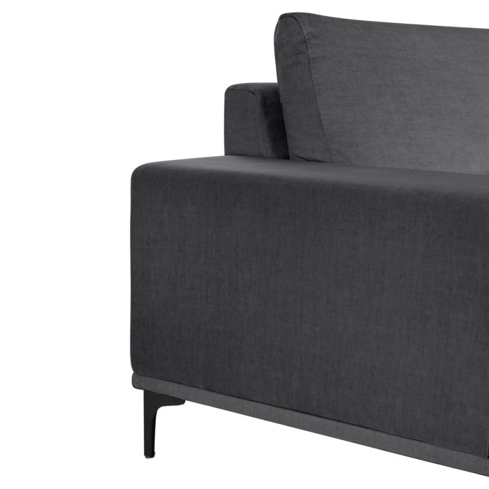 Ο FB93278.02L είναι ένας καινούργιος 3-θέσιος καναπές σε διαμόρφωση ΑΡΙΣΤΕΡΗΣ γωνίας (όπως τον κοιτάς) με κλασικό σχεδιασμό με ψηλά μεταλλικά μαύρα πόδια. Είναι επενδυμένος με όμορφο ύφασμα σε ΑΝΘΡΑΚΙ χρώμα ενώ το κομμάτι που σχηματίζει την γωνία ενώνεται με τον κυρίως καναπέ με κατακόρυφους αναρτήρες πάνελ. Η πλάτη είναι χαμηλή και διαθέτει 3 αναπαυτικά μαξιλάρια. Το κάθισμα διαθέτει γεμίσματα αφρού (προς το σκληρό)σε συνδυασμό με pocket springs προσφέροντας κάτι διαφορετικό στην εμπειρία καθίσματος. Και φυσικά, σας προσφέρουμε αυτόν τον καναπέ με εγγύηση σκελετού 3 ετών!