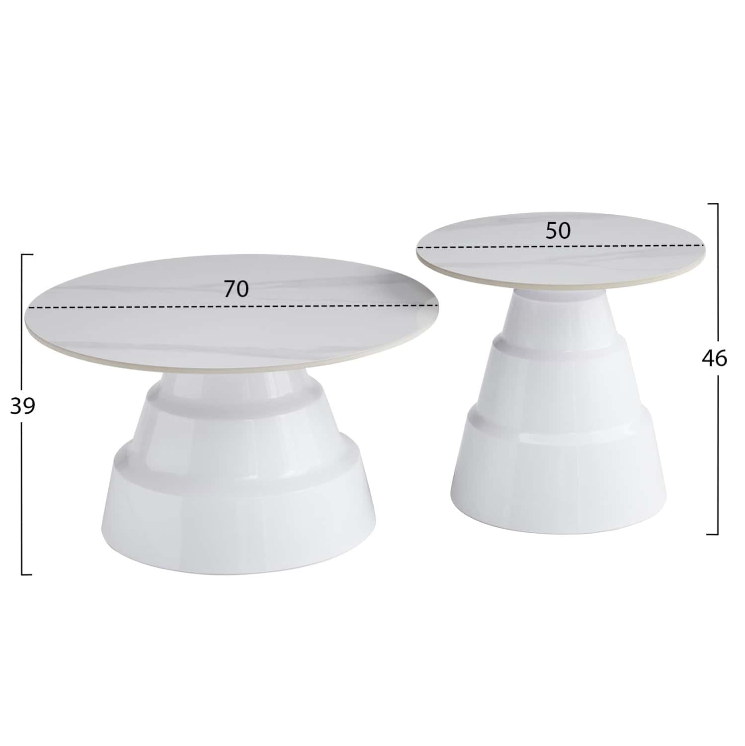 ΣΕΤ 2 ΤΡΑΠΕΖΙΑ ΣΑΛΟΝΙΟΥ FB918306.02 SINTERED STONE TOP- SNOW WHITE ΧΡΩΜΑ Φ50 & Φ70