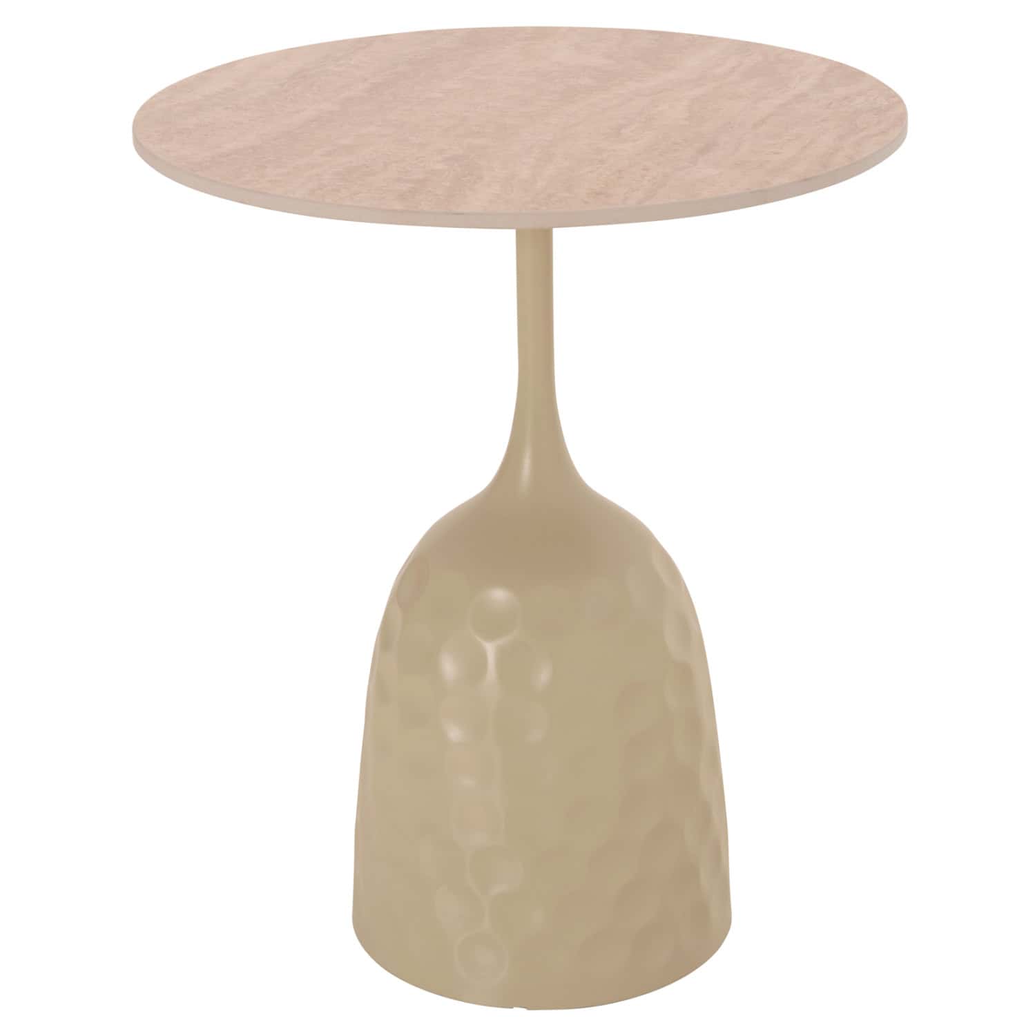 Το FB918317.04 είναι ένα εντυπωσιακό τραπέζι που θα κοσμήσει το σαλόνι σας. Η ψηλή κυλινδρική του βάση είναι μεταλλική με διάστικτη τεχνοτροπία σε ΣΑΜΠΑΝΙ χρώμα, ενώ η στρογγυλή επιφάνεια είναι κεραμική σε χρωματισμό TRAVERTINE STONE. Ιδανικό τόσο για το σπίτι, όσο και για επαγγελματικούς χώρους.