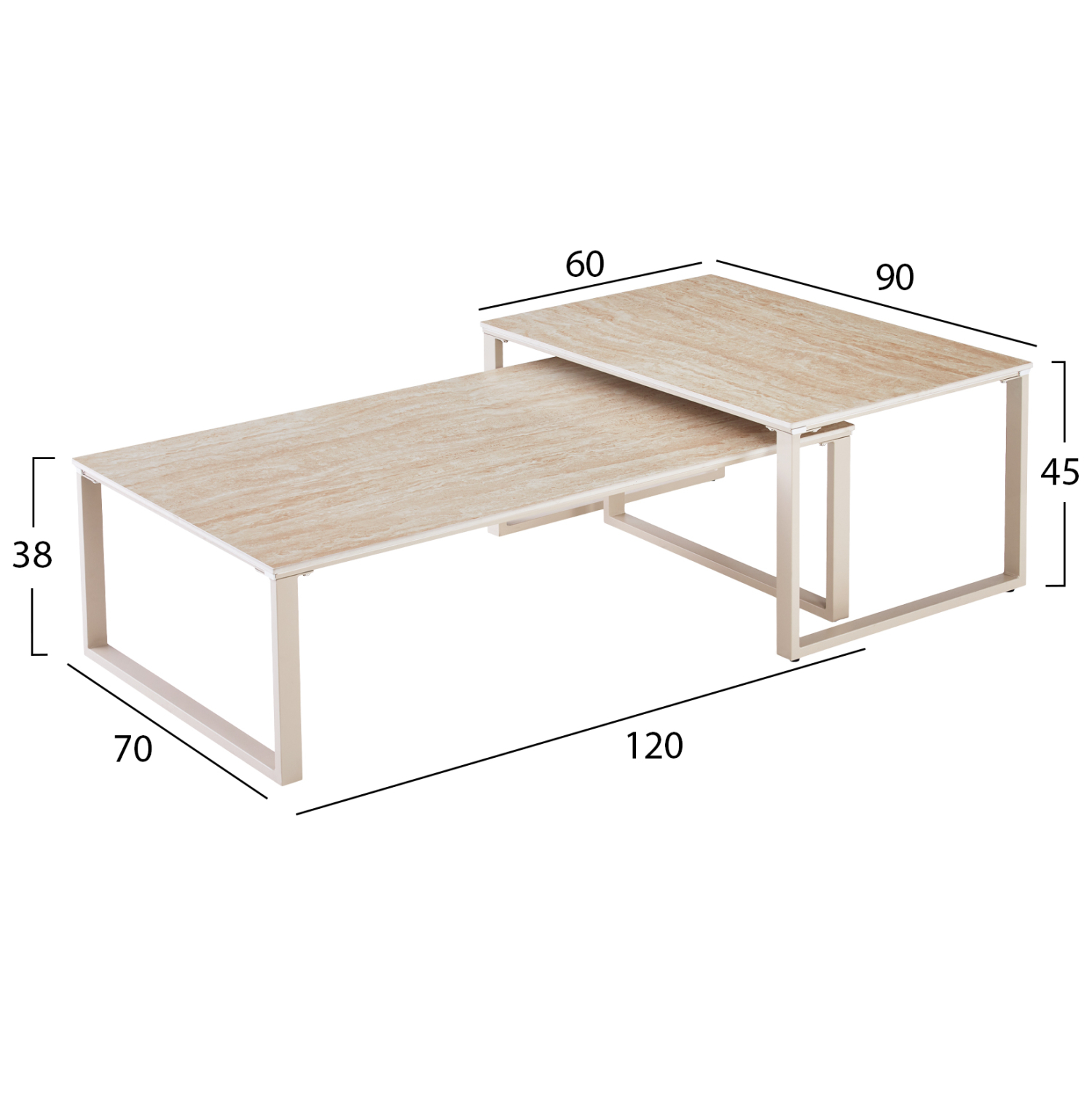 ΤΡΑΠΕΖΙ ΣΑΛΟΝΙΟΥ 2ΤΜΧ FB918365.02 ΜΠΕΖ ΠΟΔΙΑ–SINTERED STONE ΣΕ ΤΡΑΒΕΡΤΙΝΑ 120x70x45Υεκ