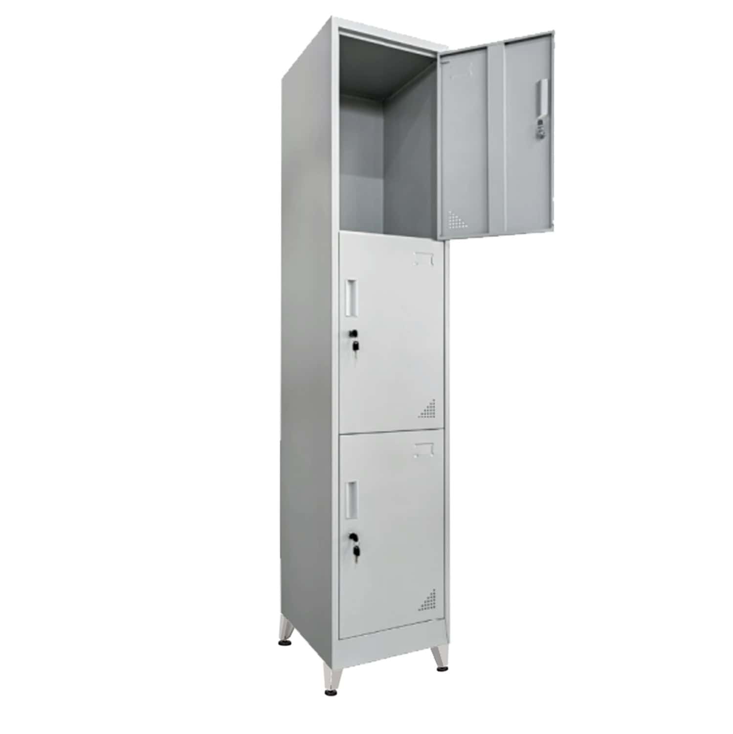 O FB921102.01 είναι ένας μεταλλικός μονόφυλλος φοριαμός με τρία ντουλαπάκια σε κατακόρυφη διάταξη που κλειδώνουν με κλειδί. Απευθύνεται κυρίως σε επαγγελματικούς χώρους που χρειάζονται ένα τέτοιο έπιπλο. Το κάθε ντουλαπάκι έχει έναν ενιαίο αποθηκευτικό χώρο, ενώ οι πόρτες διαθέτουν και γρίλιες για εξαερισμό. Τα πόδια διαθέτουν ρεγουλατόρους για ρύθμιση ύψους. Το χρώμα είναι ΑΝΟΙΧΤΟ ΓΚΡΙ.