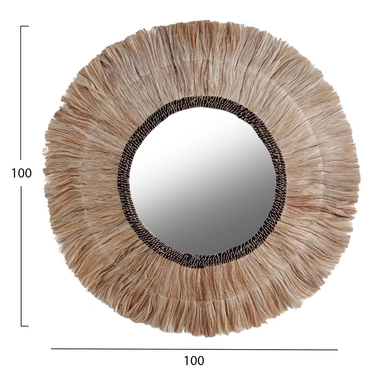 O καθρέπτης FB97748 είναι πραγματικά ένα εντυπωσιακό κομμάτι στην διακόσμηση του χώρου σας! Το design του είναι όμορφο και λιτό με πλαίσιο από ίνες κάνναβης Μανίλας, το οποίο στο κέντρο του «φιλοξενεί» τον καθρέπτη. Οι ίνες είναι στο φυσικό τους χρώμα με μαύρο δέσιμο γύρω από τον καθρέπτη, και οι διαστάσεις όλης της κατασκευής είναι ιδανικές.