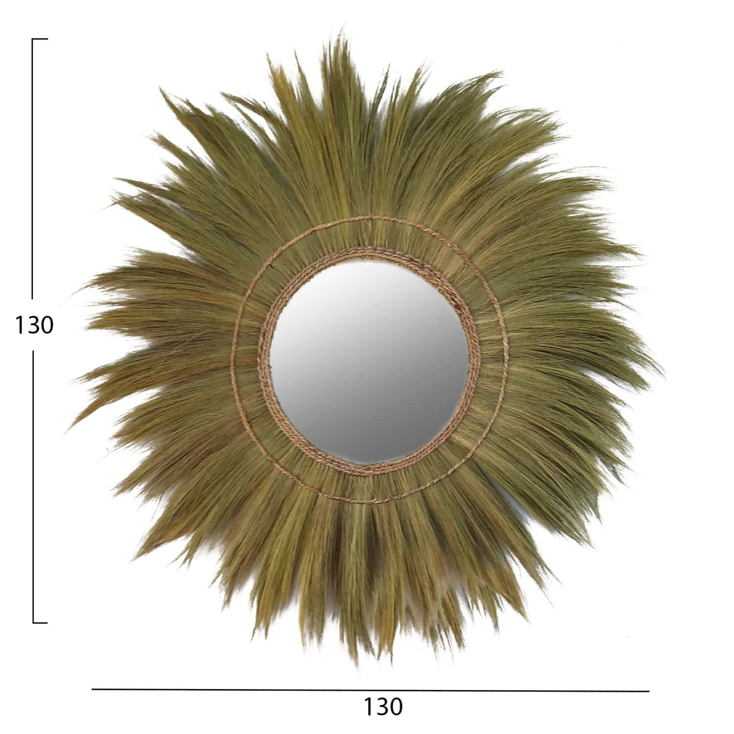 O καθρέπτης FB97734 είναι πραγματικά ένα εντυπωσιακό κομμάτι στην διακόσμηση του χώρου σας! Το design του είναι μοναδικό με το αριστοτεχνικά κατασκευασμένο πλαίσιο από ίνες φλοιού μπανάνας, το οποίο στο κέντρο του «φιλοξενεί» τον καθρέπτη. Οι ίνες είναι στο φυσικό τους χρώμα και οι διαστάσεις όλης της κατασκευής είναι μεγάλες.