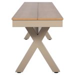 Το παγκάκι εξωτερικού χώρου FB96040.04 έχει σκελετό αλουμινίου σε ΣΑΜΠΑΝΙ χρώμα, με δύο χιαστί βάσεις ενωμένες με μια οριζόντια φαρδιά ράβδο. Η επιφάνεια του καθίσματος είναι κατασκευασμένη από δύο πλάκες polywood σε χρώμα ΦΥΣΙΚΟΥ ΞΥΛΟΥ. Οι πλούσιες διαστάσεις του που άνετα βολεύονται 4 άτομα, το καθιστούν όμορφη και πρακτική προσθήκη για πληθώρα χρήσεων τόσο στο σπίτι, όσο και σε επαγγελματικούς χώρους.